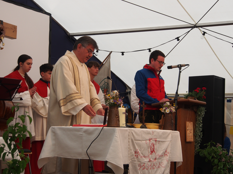 Das Programm bot für die Besucher neben Geselligkeit und guter Unterhaltung auch spannende Einblicke in die Arbeit der Bergwacht am Samerberg. Höhepunkt der mehrtägigen Jubiläumsfeier war der Festgottesdienst am vergangenen Sonntag. Aufgrund schlechten Wetters musste er ins Festzelt verlegt werden. „Was nutzt es, wenn jemand sagt, er habe den Glauben, aber es fehlen die Werke. Glaube ohne Werke ist wie eine Bergwacht ohne Retter, ohne Einsatzfahrzeug. Es ist wie ein Seil, das nicht hält, schön anzuschauen, aber nutzlos“, so Diakon Günter Schmitzberger in seiner Predigt.