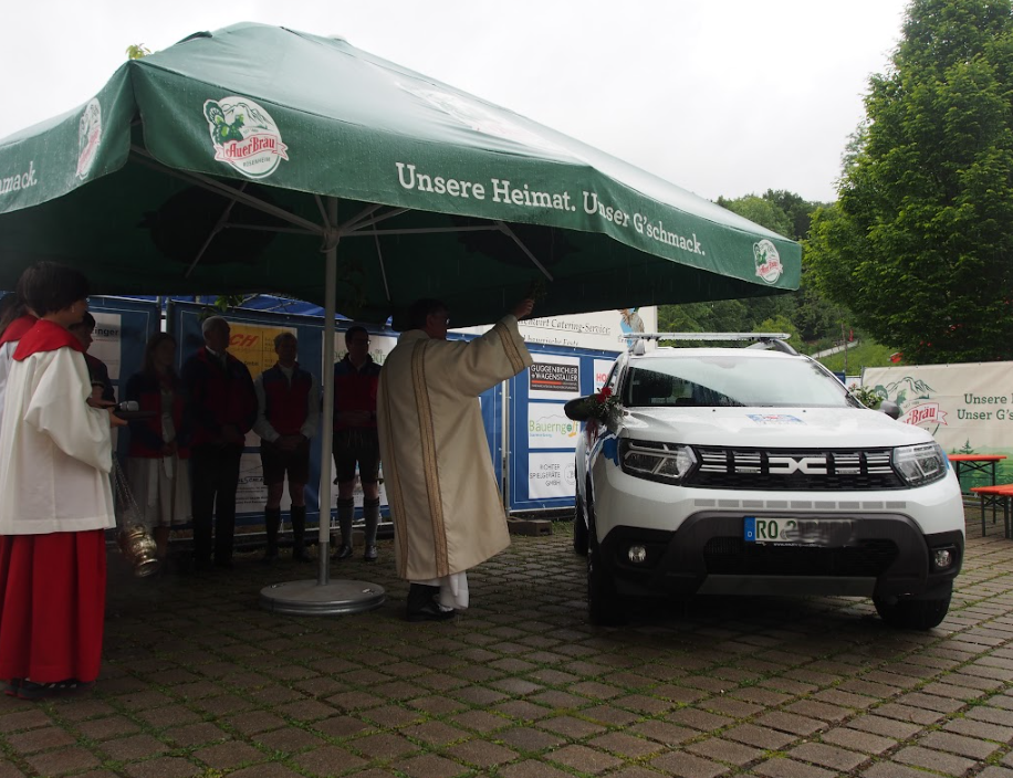 Nach dem Festgottesdienst ging es aber dann doch hinaus ins Freie, denn da stand die Segnung des neuen Einsatzfahrzeug der Bergwacht Samerberg auf dem Programm.