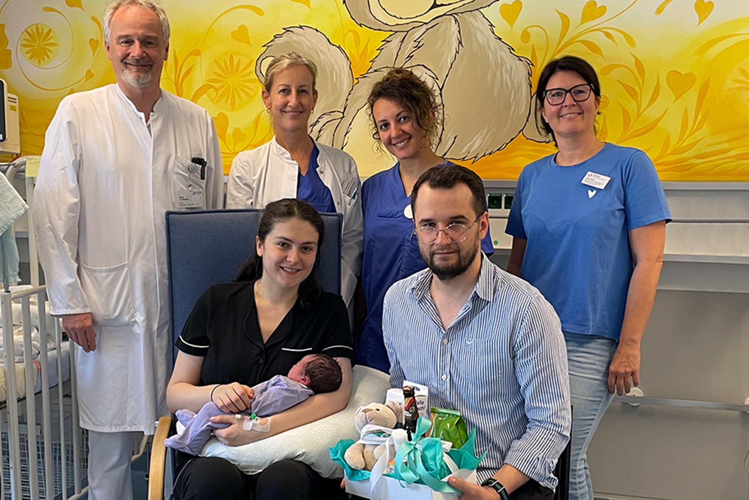 Als besonderes Geschenk überreichten die Gratulanten Chefarzt PD Dr. Andreas Schnelzer, leitende Oberärztin der Geburtshilfe Dr. Angela Kirschenhofer, Bereichsleitung der Kinderstation Tanja Walker und Hebamme Meri Shalari eine Geschenkebox mit dem RoMed-Teddybärchen, der als treuer, kuscheliger Begleiter zur Seite stehen wird. „Wir freuen uns sehr über die Geburt von Sana, insbesondere da die Schwangerschaft bereits seit mehreren Monaten auf Grund von Frühgeburtsbestrebungen betreut wurde und Sana nun als reifes Neugeborenes auf die Welt kommen durfte. Wir sind dankbar für das Vertrauen, das uns ihre Eltern entgegengebracht haben. Für die Zukunft wünschen wir der jungen Familie von Herzen alles Gute, viel Glück und Freude mit ihrem kleinen Sonnenschein“, so die Leiterin der Geburtshilfe Dr. Kirschenhofer.