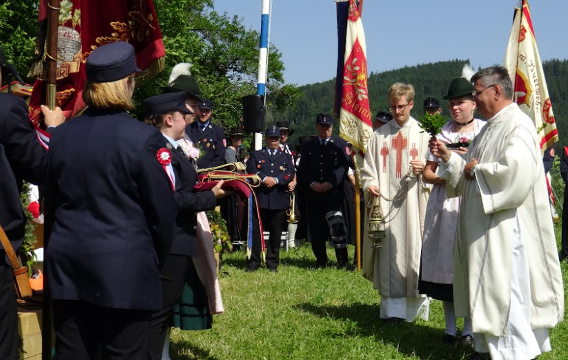 Diakon Günter Schmitzberger und Kurat Tobias Pastöötter fanden eindrucksvolle Worte für das wichtige ehrenamtliche Engagement der beiden Feuerwehren: „Die Feuerwehr brennt für ihre Sache – ein inneres Feuer, das bewegt und Mut macht, ein Feuer der Nächstenliebe“.