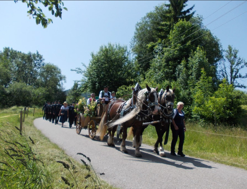 Im Anschluss an den Festgottesdienst zog der Festzug mit vielen Vereinen und Ehrengästen durch das Dorf, begleitet von Musik. Im Festzelt wurde dann bei Speis und Trank weitergefeiert.
