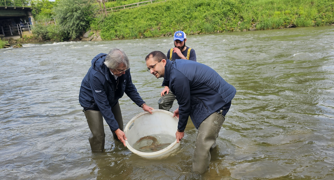 Darum wurden nun anlässlich des Bayerischen Landesfischereitag 2025 15 Junghuchen in der Mangfall in Rosenheim gesetzt. Ursprünglich war die Besatzaktion eigentlich für den Inn geplant. Aufgrund Hochwasser mussten die Fischer sich aber spontan umentscheiden. „Huchen brauchen klares Wasser und das ist bei Hochwasser nicht der Fall. Mit der Zeit werden die Fische aber wahrscheinlich von der Mangfall in den Inn wandern“, meint Reiner Schäfer.