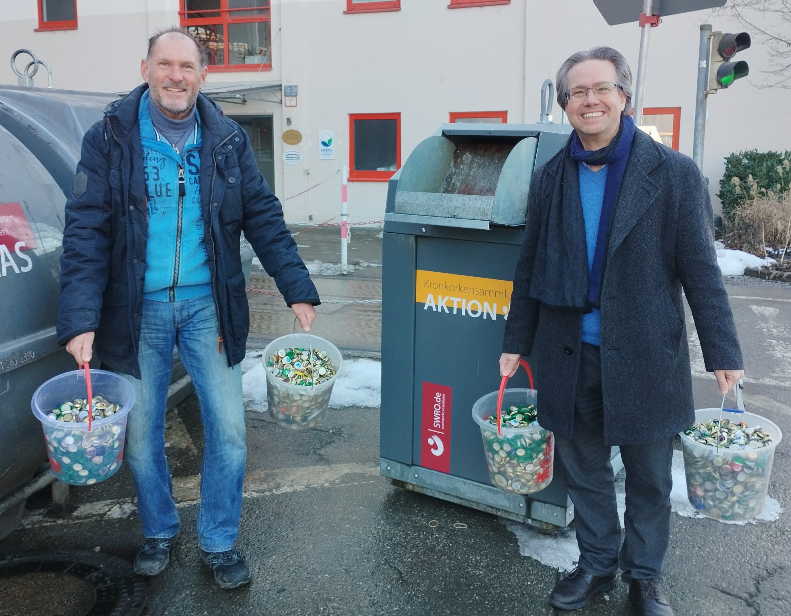 Rosenheim – Politik kann trocken sein – beim Kampf gegen den Durst gleichzeitig Gutes tun, das zeigte nun der AfD-Ortsverband Rosenheim mit einer Sammelaktion zur Unterstützung sozialer Projekte. Pünktlich zu Beginn der Vorbereitungen für das Wahljahr übergaben der Ortsvorsitzende Maximilian Leucht und sein Stellvertreter Bernhard Baron Boneberg eine beachtliche Menge Kronenkorken am städtischen Bauhof. Leucht, der auch als Oberbürgermeisterkandidat der AfD antritt, scherzte bei der Übergabe, dass man sich ein Ziel setzen müsse, das auch eine symbolische Kraft habe.