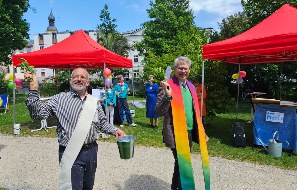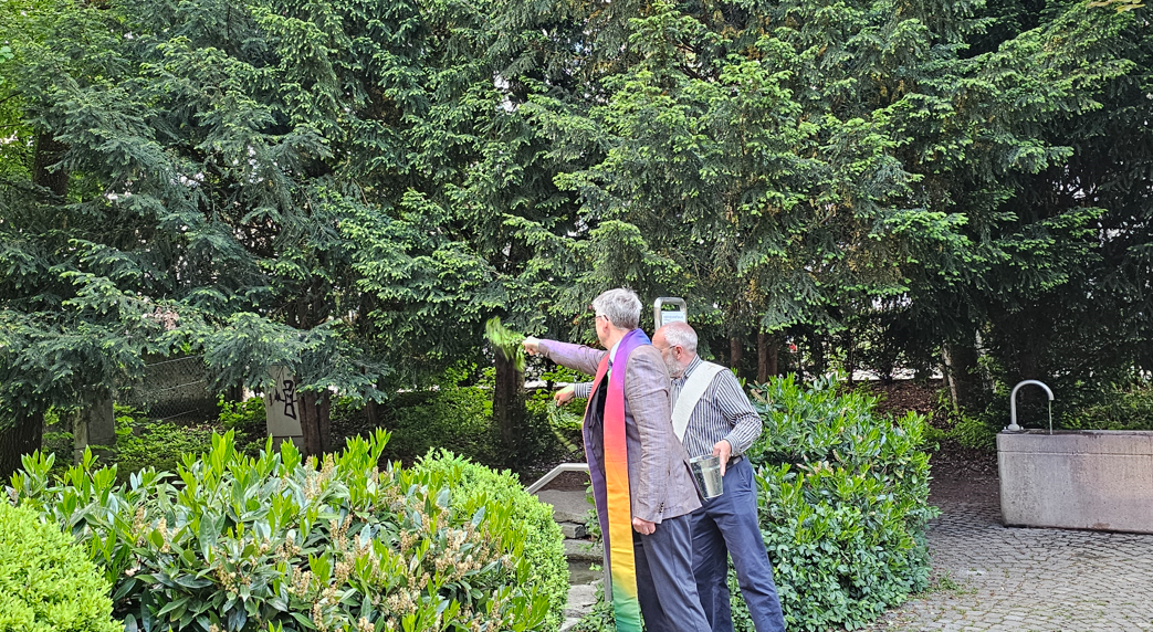 Die Geistlichen Dr. Bernd Rother und Erwin Bader wählten für die Neusegnung der Kneipp-Anlage die Bibelstelle Exodus 14, in der die Teilung des Meeres beschrieben wird: „Wasser ist auf der einen Seite lebensspendend, birgt auf der anderen Seite aber auch Gefahren, wie Hochwasser oder Starkregen.“