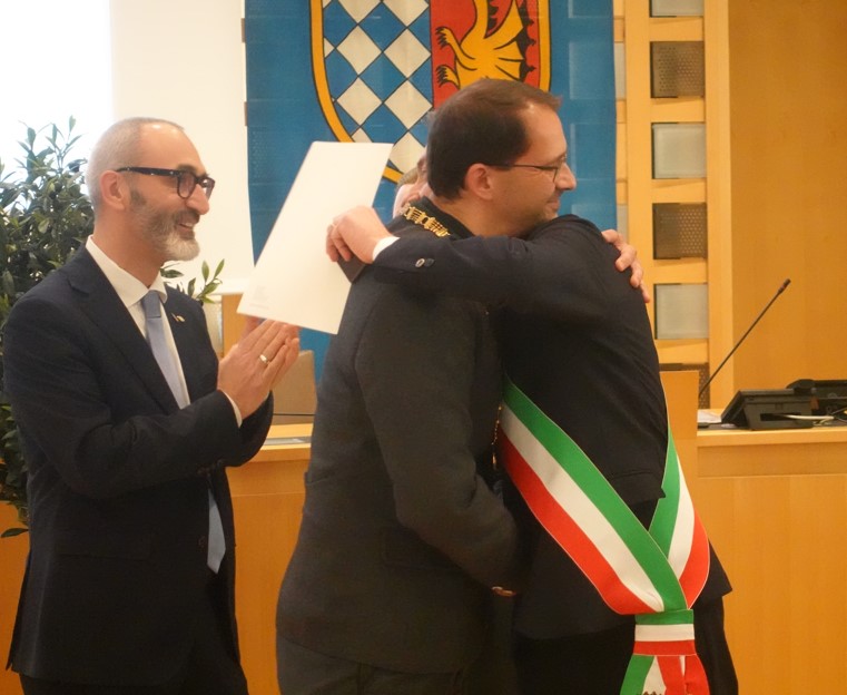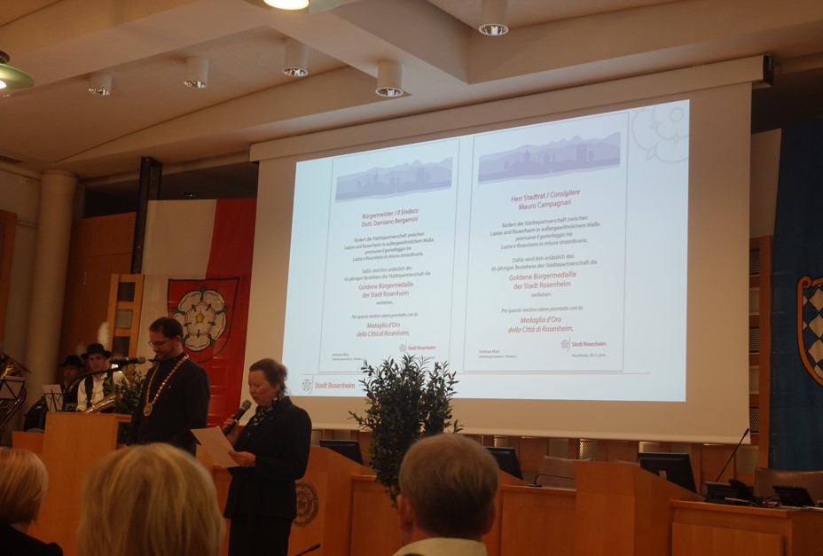 Nach Meinung des Rosenheimer Stadtrats trifft das neben Bürgermeister Damiano Bergamini auch auf Mauro Campagnari, Stadtratsmitglied von Lazise, zu, der in der italienischen Stadt am Gardasee damit betraut ist, die Städtepartnerschaft mit Rosenheim zu pflegen. Einstimmig fiel darum im Oktober dieses Jahres die Entscheidung, auch an ihn die Goldene Bürgermedaille zu verleihen. Damiano Bergamini sprach dabei von einem „wertvollen Vertrauensbeweis“ und versprach die Verbindungen zwischen den beiden Städten zu pflegen.