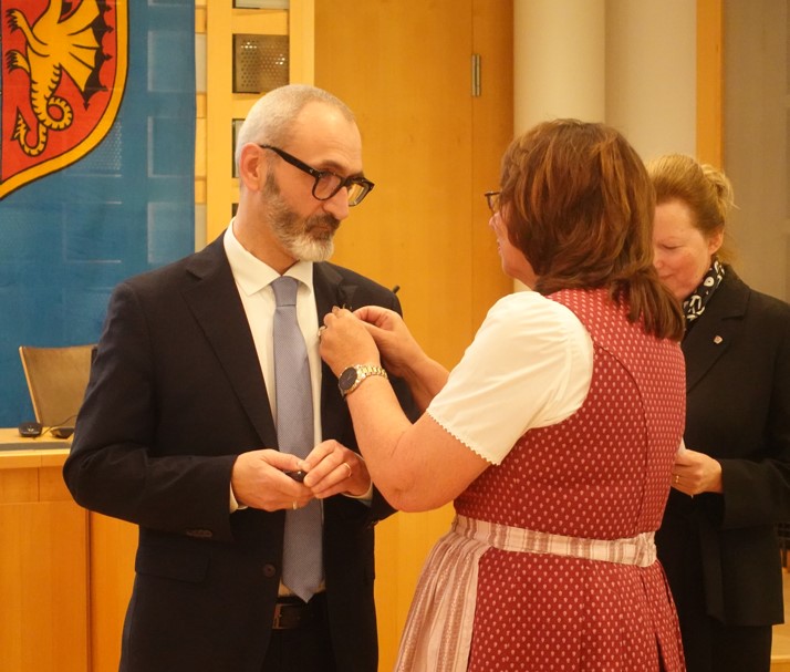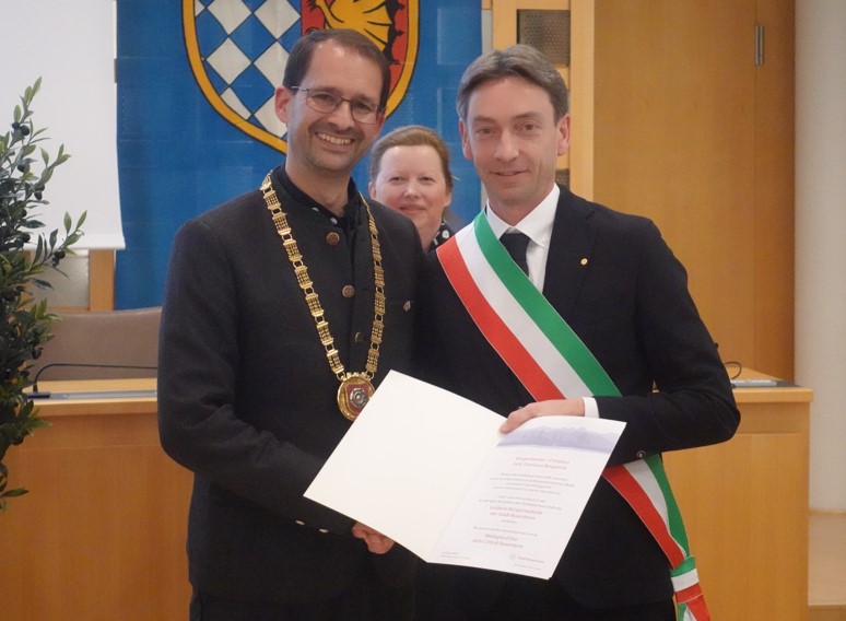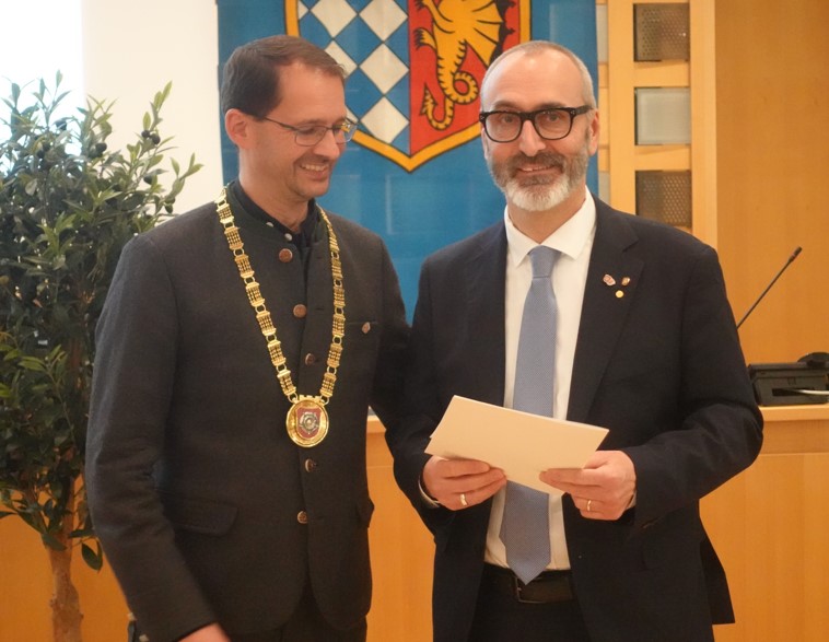 Rosenheim / Lazise – Vor 45 Jahren wurde die Städtepartnerschaft zwischen Rosenheim und Lazise besiegelt. Gefeiert wurde das Jubiläum mit einem Empfang im Rosenheimer Rathaus. Dabei standen die Vergabe von zwei Goldenen Bürgermedaillen und ein Eintrag ins Goldene Buch der Stadt auf dem Programm.