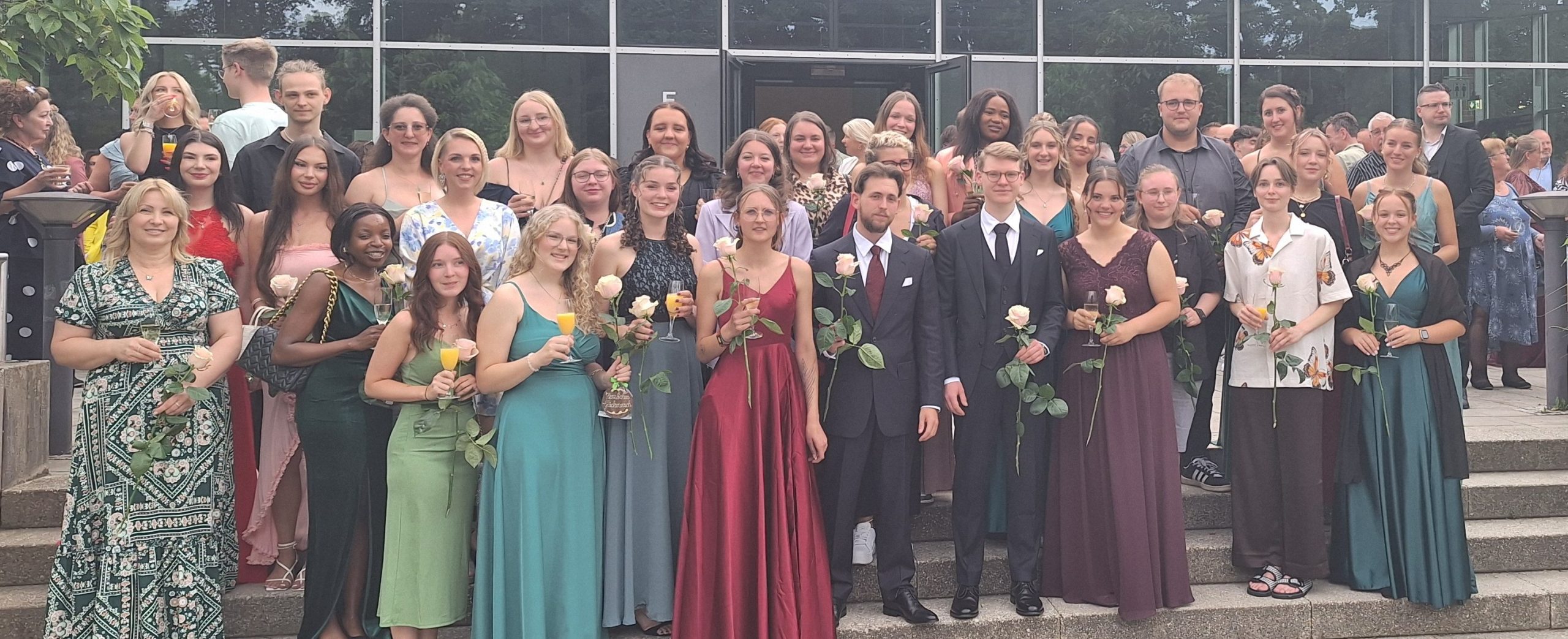 Wolfgang Janeczka, stellvertretender Schulleiter, betonte die besondere Leistung des diesjährigen Abschlussjahrgangs: „Alle haben bestanden. Das ist keine Selbstverständlichkeit, sondern was ganz Großes. Ich weiß wovon ich rede, weil ich diesen Job schon seit drei Jahrzehnten mache und in den allermeisten Jahrgängen gibt es ein paar Leute, die den Abschluss im ersten Anlauf nicht schaffen.“ Besonders herausragend: Zehn Absolventinnen und Absolventen werden in diesem Jahr wieder mit dem Staatspreis ausgezeichnet – alle mit einer Abschlussnote zwischen 1,0 und 1,4. Ihre Namen wurden unter lautem Applaus verlesen.