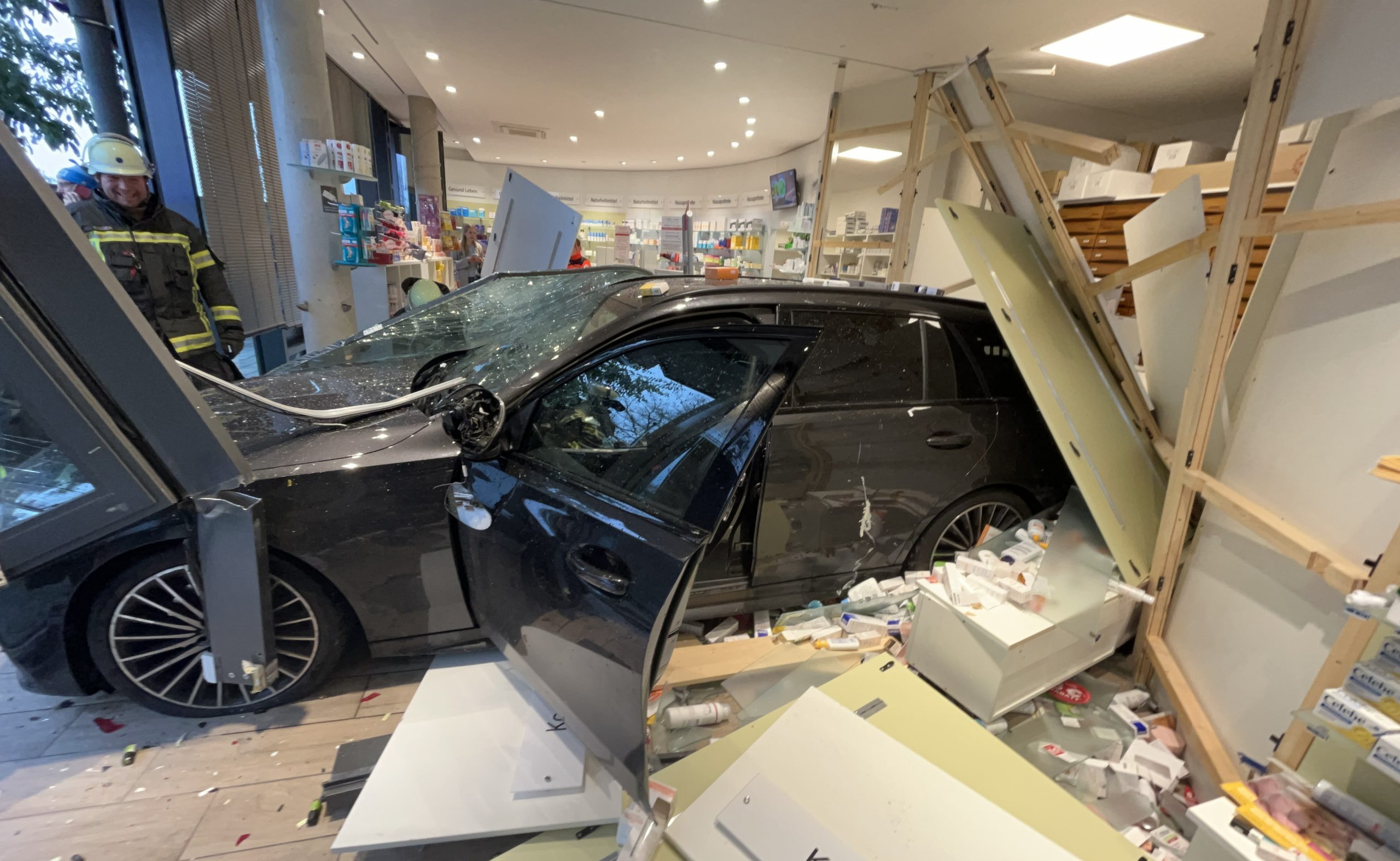 Die Fahrerin blieb unverletzt, ein Atemalkoholtest verlief negativ. Auch die Apotheken-Mitarbeiter wurden nicht verletzt. Die alarmierte Feuerwehr Rosenheim barg das Fahrzeug aus dem Verkaufsraum und sicherte das Gebäude.