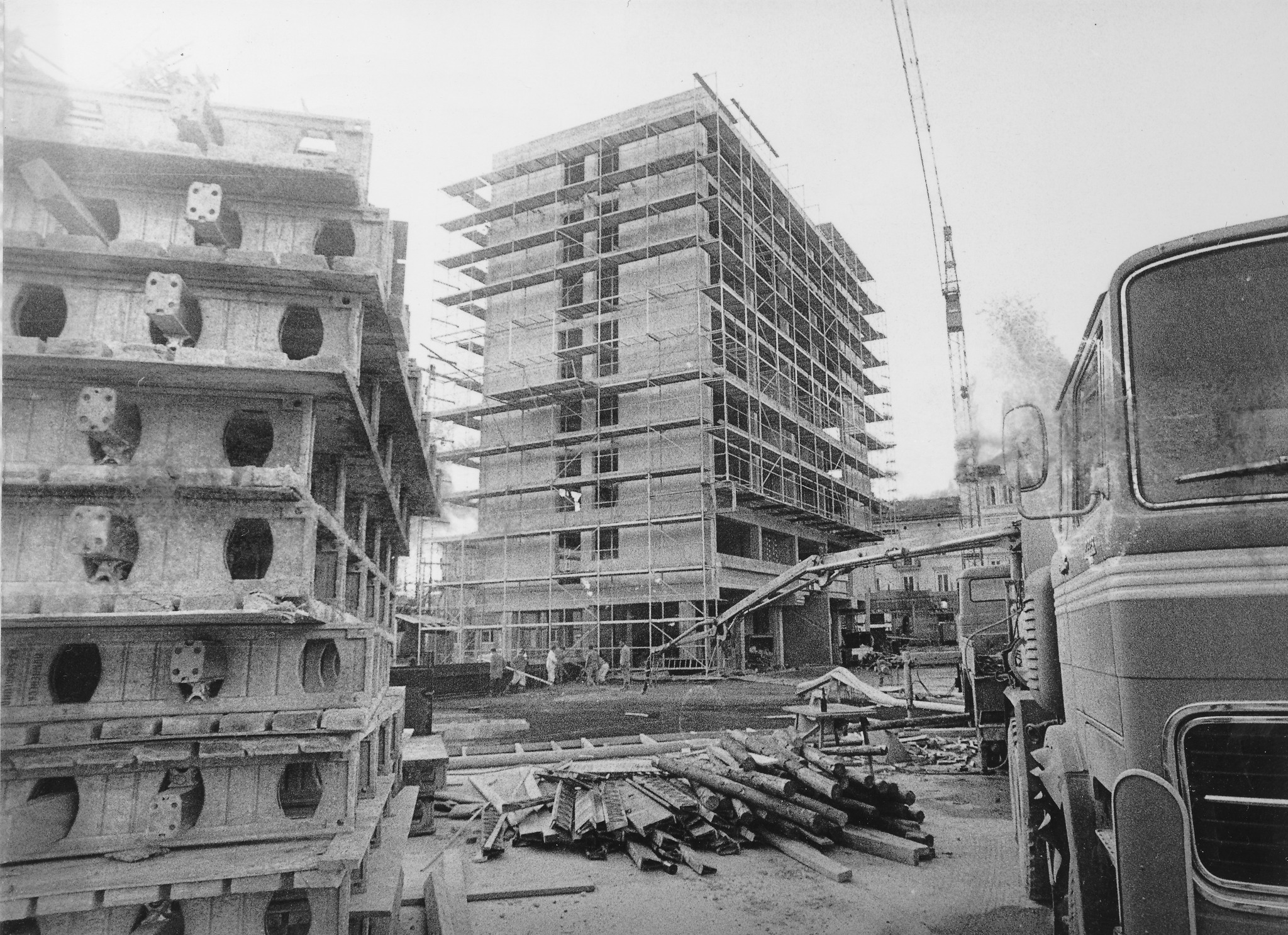 Rosenheim – Unsere fotografische Zeitreise geht heute zurück in das Jahr 1970. Auf der historischen Aufnahme zu sehen ist der Neubau des Volksbank-Raiffeisenbank-Hochhauses in der Bahnhofstraße in Rosenheim.