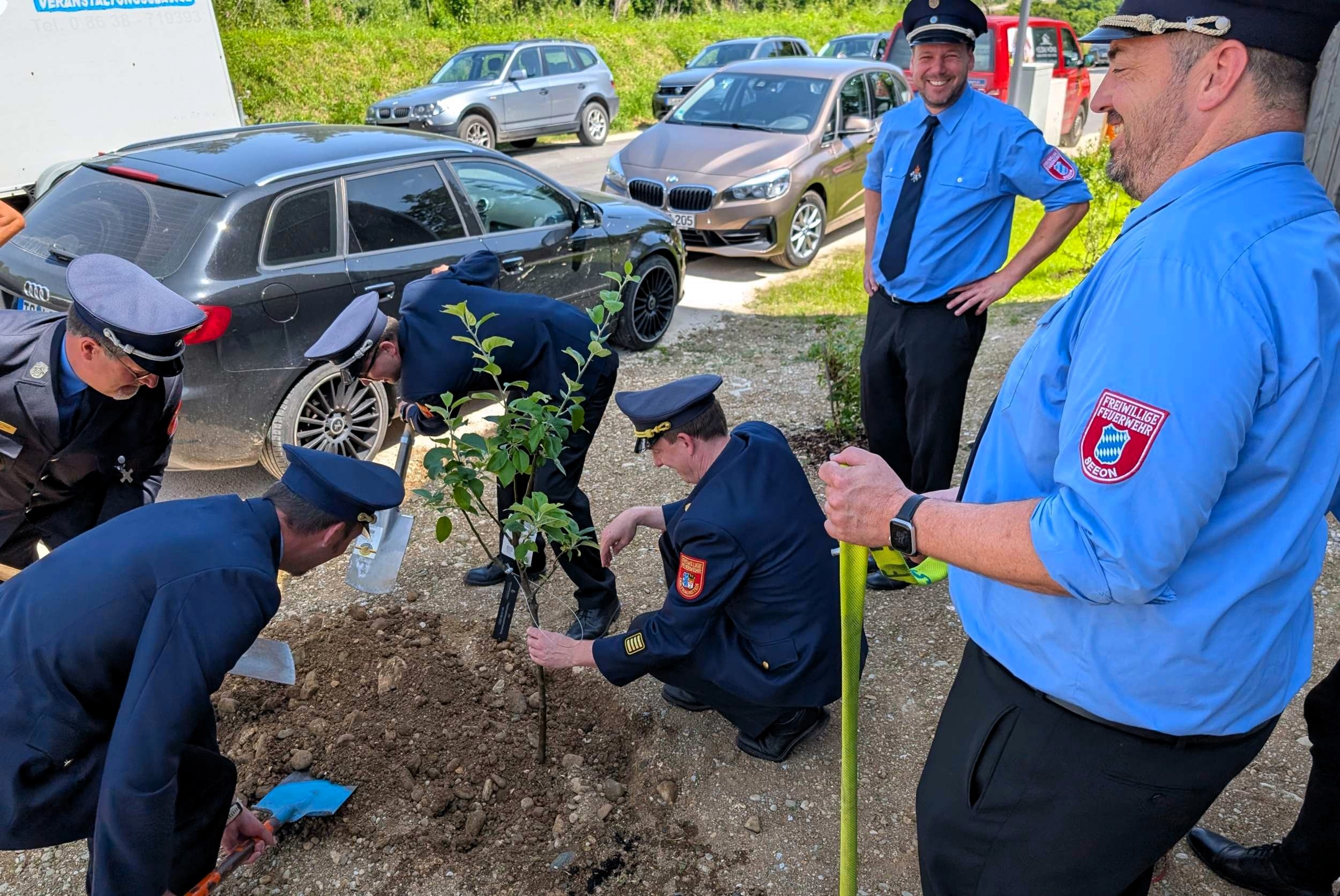 Über den Erfolg und dessen Hintergründe kann man sicherlich lange spekulieren – Fakt ist, allein im Landkreis Traunstein wurden durch die meisten der 80 Feuerwehren mittlerweile junge Bäume gepflanzt. „Das ist natürlich schon eine großartige Sache und gelebter Natur- und Umweltschutz“ freut sich Christof Grundner, der auch selbst vor einigen Tagen zum Spaten gegriffen und zusammen mit den Kreisbrandmeistern Alexander Heide und Martin Hochreiter sowie dem Kreisbrandinspektor Josef Egginger am neuen Feuerwehrhaus in Seeon einen Apfelbaum in die Erde gesetzt hat.