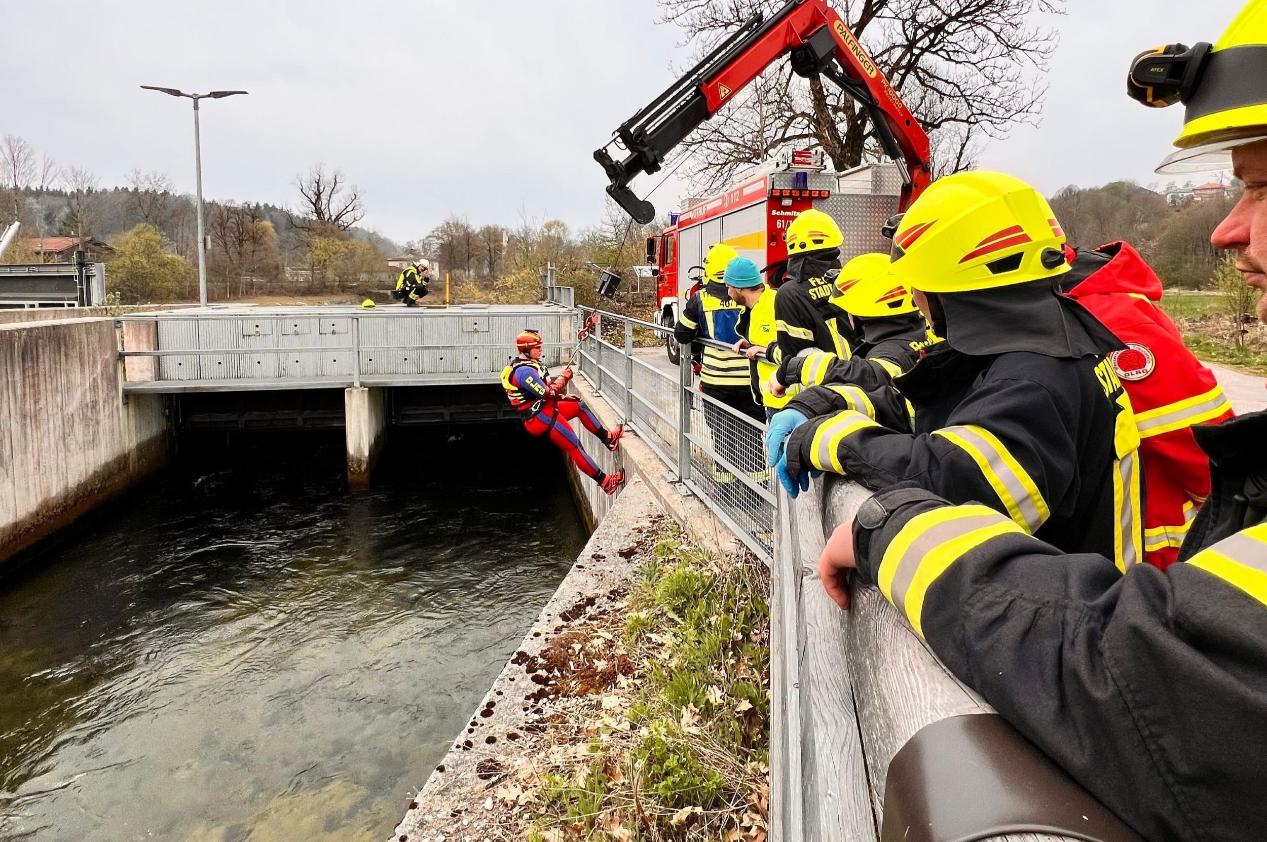 Gemeinsam konnte der Kadaver eines Bibers rasch geborgen werden. Zum Einsatz kam dabei ein Strömungsretter, der am Kran eines Rüstwagens der Feuerwehr gesichert war. Für die Dauer der Arbeiten wurde die Schleuse kurzzeitig geschlossen.