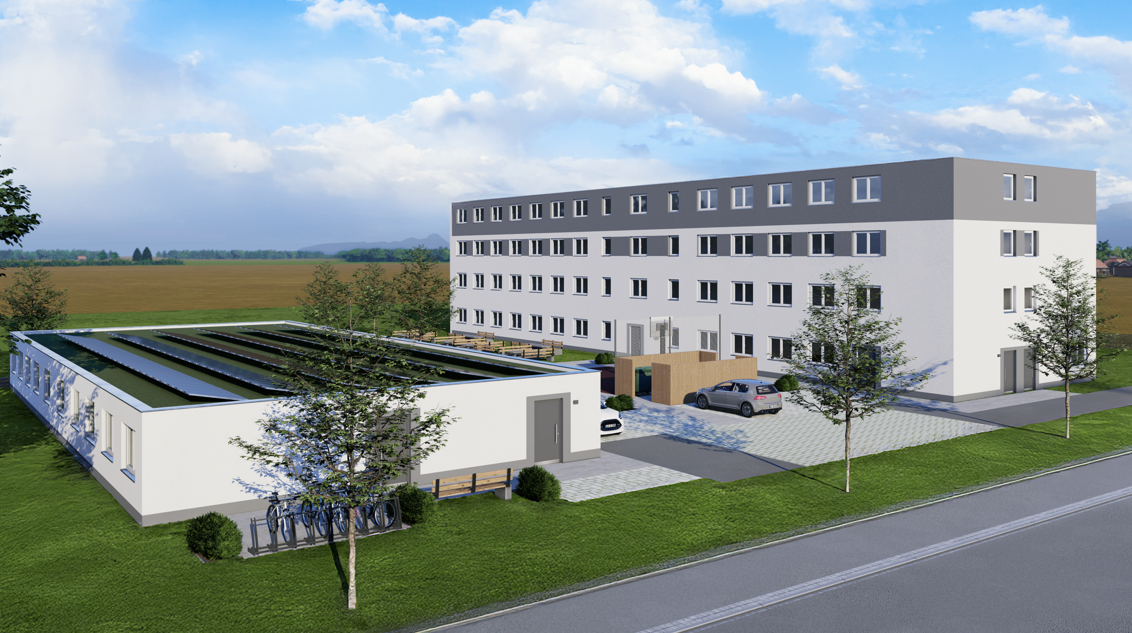 Das erste Gebäude ist einstöckig (Länge gut 30 Meter, Breite knapp 15 Meter), das zweite, direkt gegenüberliegend, vierstöckig (Länge von 48, Breite 13 und Höhe knapp 12 Meter). Auf den beiden begrünten Gebäudedächern soll eine PV-Anlage (50 bis 80 KW) gesetzt und die Hausfassaden mit einer Putzstruktur versehen werden. Warum keine gefälligere Verteilung der Stockwerke möglich war, begründet sich unter anderem in den Richtlinien der Regierung für die Unterbringung für die Unterbringung von minderjährigen Flüchtlingen und den örtlichen Gegebenheiten.