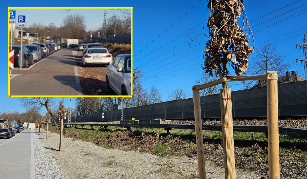 Darum parkten viele einfach auf dem unbefestigten Streifen zwischen dem neuen Geh- und Radweg und den Bahngleisen. Mit den neu gepflanzten Bäumen ist dies nicht mehr ganz so einfach möglich.