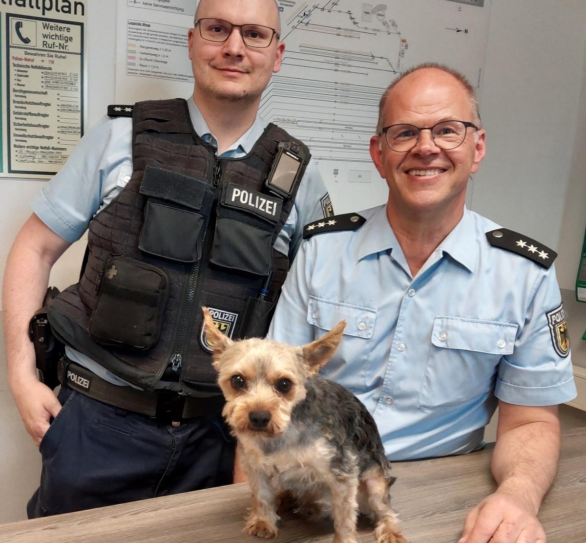 Weiden in der Oberpfalz – Am Mittwochnachmittag (30.4.2025) entdeckte eine Streife der Bundespolizei am Bahnhof Weiden einen herrenlosen Hund. Der kleine Yorkshire Terrier irrte allein über den Bahnhof, ohne dass eine zugehörige Person im Umfeld auszumachen war. Die Einsatzkräfte der Bundespolizei handelten sofort und nahmen den Vierbeiner fürsorglich mit zur Dienststelle.