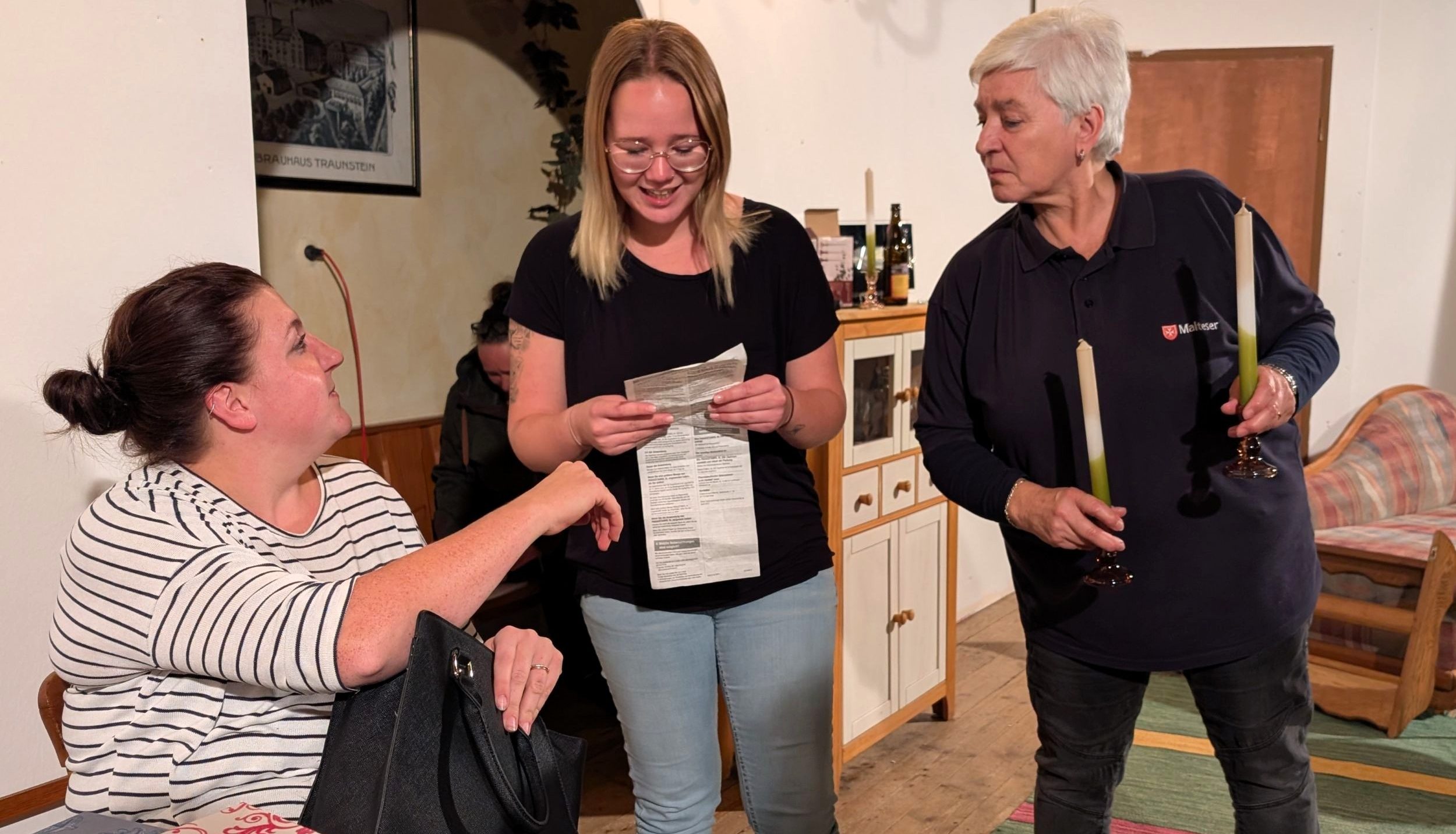 (Quelle: Pressemitteilung Traunstein Hubert Hobmaier / Beitragsbild: Copyright Hubert Hobmaier, die Proben zum Stück „Immer wieder samstags“ sind bereits voll im Gange. Insgesamt sieben Mal präsentieren die Theaterspieler des Chiemgauer Gaudibredls das Lustspiel auf der Bühne im Gasthaus zur Post in Kammer. Laura Wandinger, Michaela Mittermeier und Doris Kandler (von links nach rechts) werden dabei als die Freundin Diana beziehungsweise als Tochter Steffi und Tante Joshi auf der Bühne stehen und hatten bereits während der Proben sehr viel zu lachen.)
