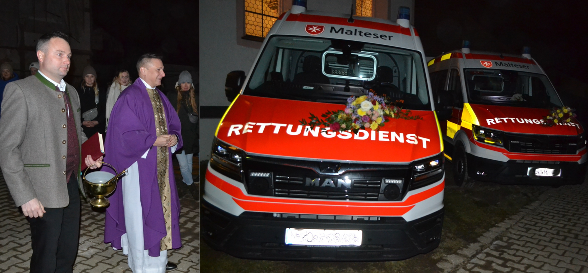 Die Feier begann mit einer festlichen Messe in St. Peter, zelebriert von Prodekan Fabian Orsetti, Leiter des Pfarrverbands Stephanskirchen und seit Sommer Ortsseelsorger der Malteser. Vor der Kirche bat Orsetti um den Segen für die beiden Krankenwagen und alle, die damit unterwegs sein werden. Die beiden KTW vom Typ Bayern MAN sind im öffentlich-rechtlichen Rettungsdienst im Einsatz und werden über die Integrierte Leitstelle Rosenheim zu Einsätzen entsandt. Einer der Wagen ist bereits seit Oktober im Dienst, der zweite wird zum Jahresende in Dienst gestellt.