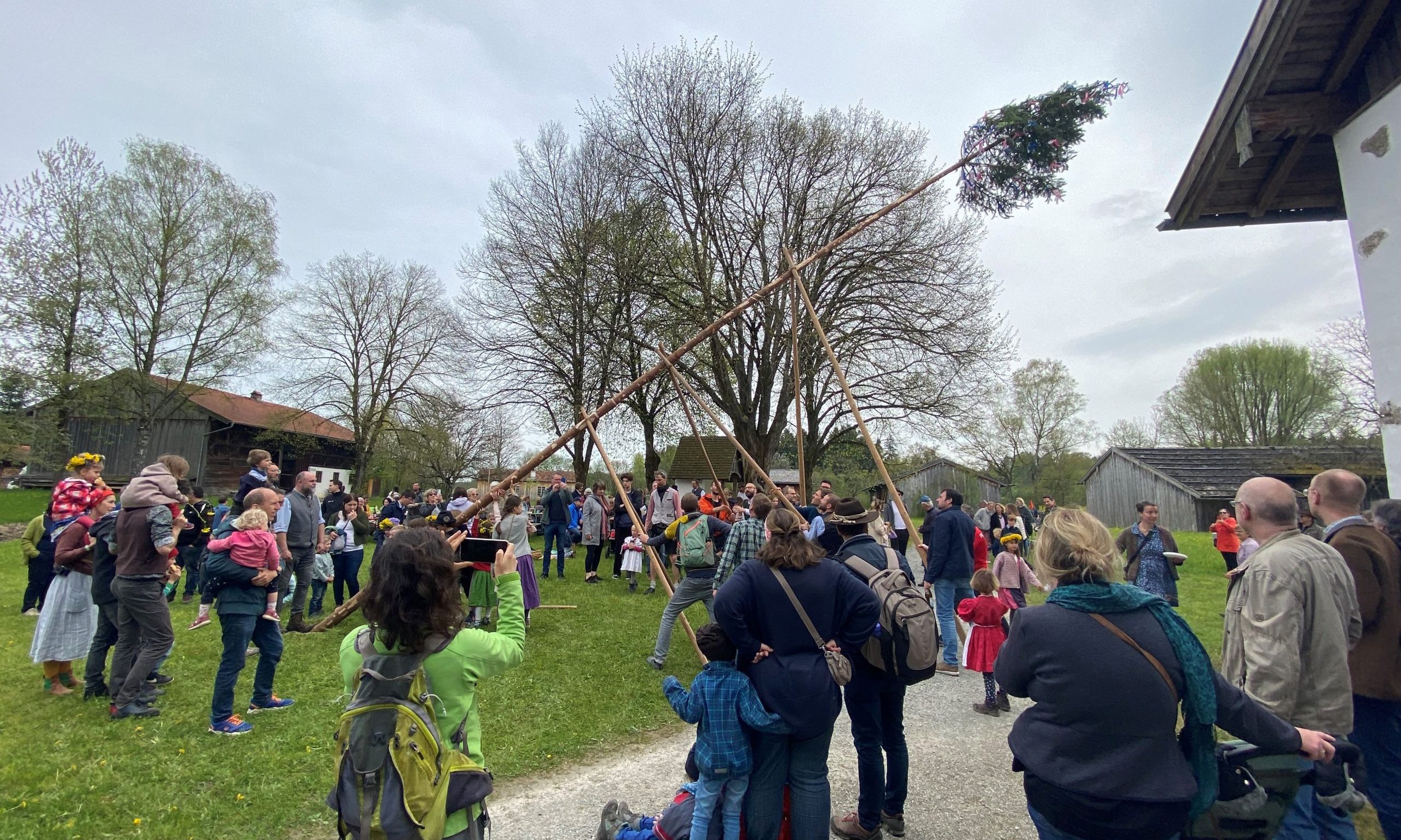 (Quelle: Pressemitteilung Freilichtmuseum Amerang / Beitragsbild: Mit vereinten Kräften wird der Maibaum aufgestellt. Copyright Bezirk Oberbayern, Freilichtmuseum Amerang.)