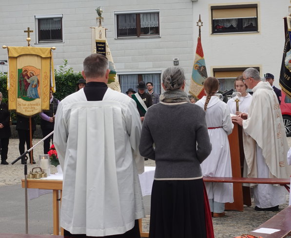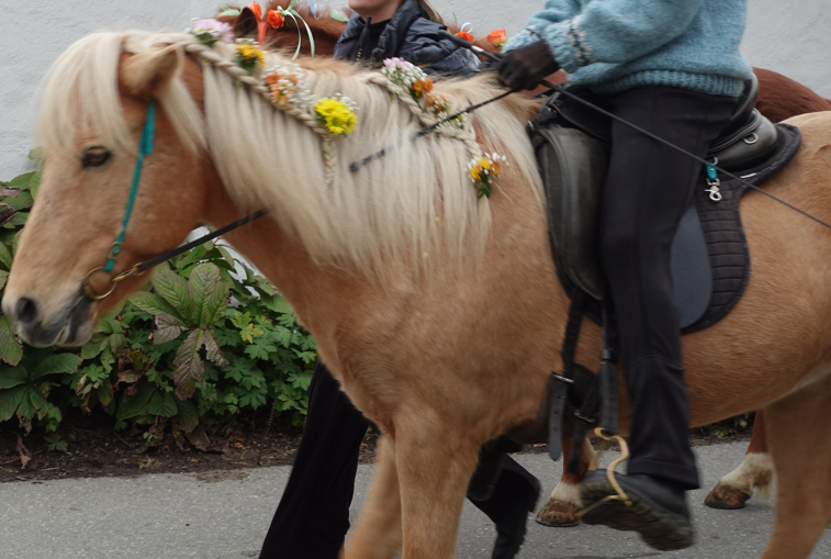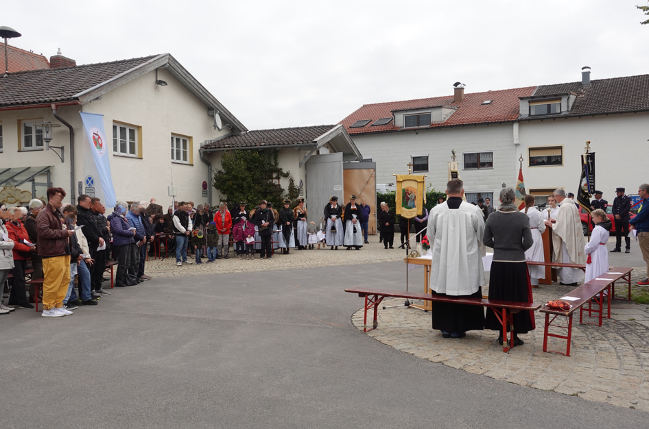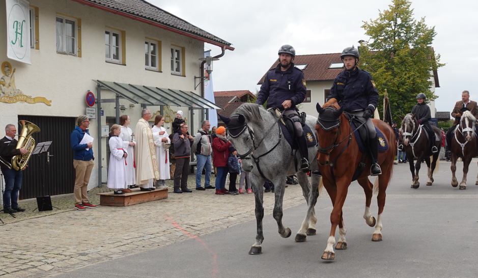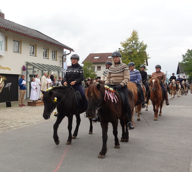 Dreimal zogen Ross, Reiter und Kutscher an Pfarrer Baumgartner vorbei, der ihnen den kirchlichen Segen spendete. Unter den Teilnehmern waren auch diesmal wieder viele Pferde und Reiter des nahegelegenen Islandpferdehofs Auensee.