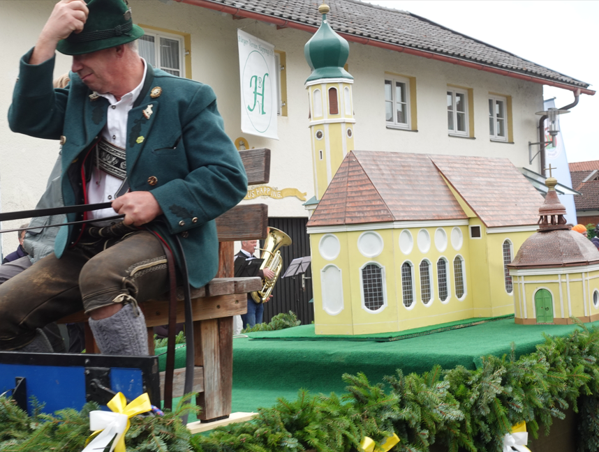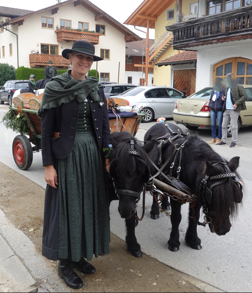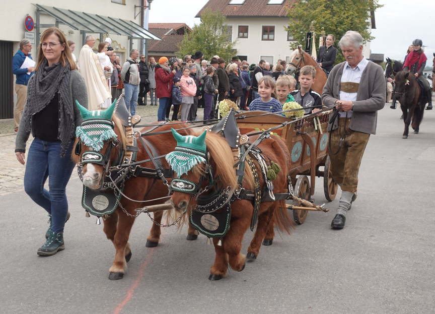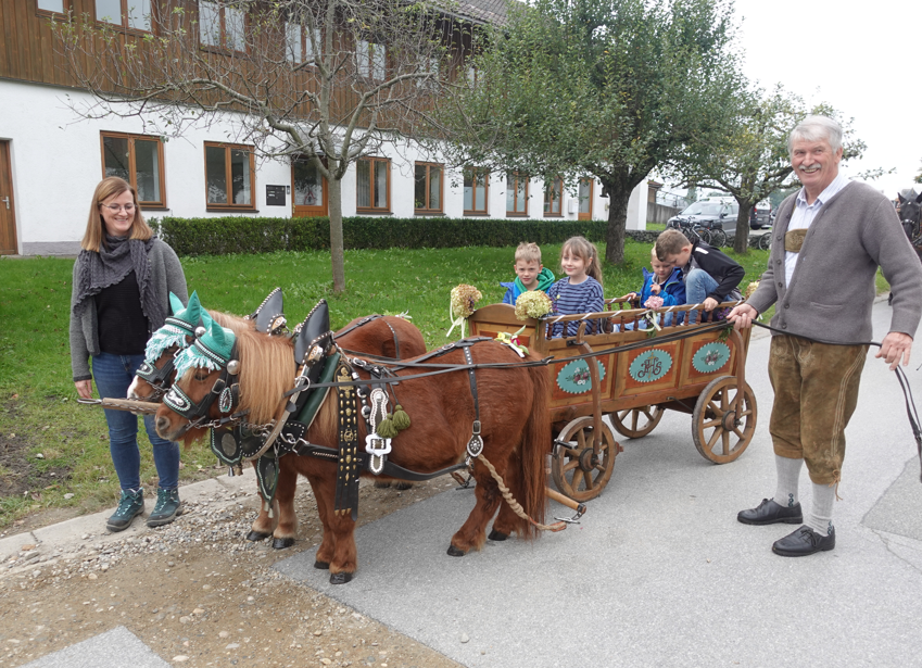 Mit dabei war auch Wast Ruhsamer, der mit seinen beiden 17-jährigen Ponys Maxima und Cindy kam. Den kleinen, liebevoll gestalteten Wagen, den die Tiere zogen, hat er selbst gebaut und verziert – ebenso wie zwei weitere Wagen. Ruhsamer ist mit seinen Gespannen regelmäßig bei Brauchtumsveranstaltungen in Stadt und Landkreis dabei, unter anderem auch beim Einzug zum Rosenheimer Herbstfest. „Das ist für mich ein Hobby, und jedes Hobby ist natürlich auch mit Arbeit verbunden“, erzählte er. „Es ist immer wieder schön, dabei zu sein.“
