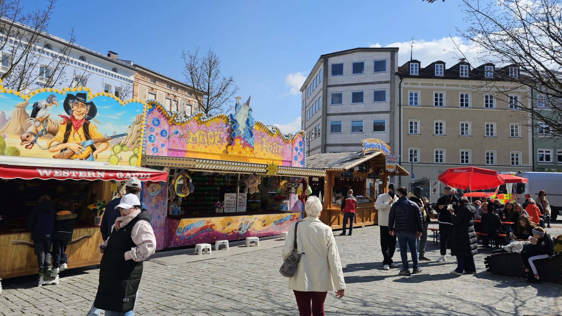 Eröffnet wurde die Veranstaltung am vergangenen Freitag (20. März 2026). Seit ihrem Start im Jahr 2022 hat sich „Frühling in Rosenheim“ zu einem festen Programmpunkt im Terminkalender der Stadt entwickelt. Schausteller aus der Region bieten Unterhaltung in Form verschiedener Buden und Imbissstände. Für Nervenkitzel sorgt ein Schießwagen, der zu Zielübungen einlädt. Außerdem können Besucher Pfeilwerfen ausprobieren oder eine Runde auf dem Kinderkarussell drehen. Wer Hunger bekommt, wird an der Brotzeithütte fündig – dort gibt es herzhafte Brotzeiten.