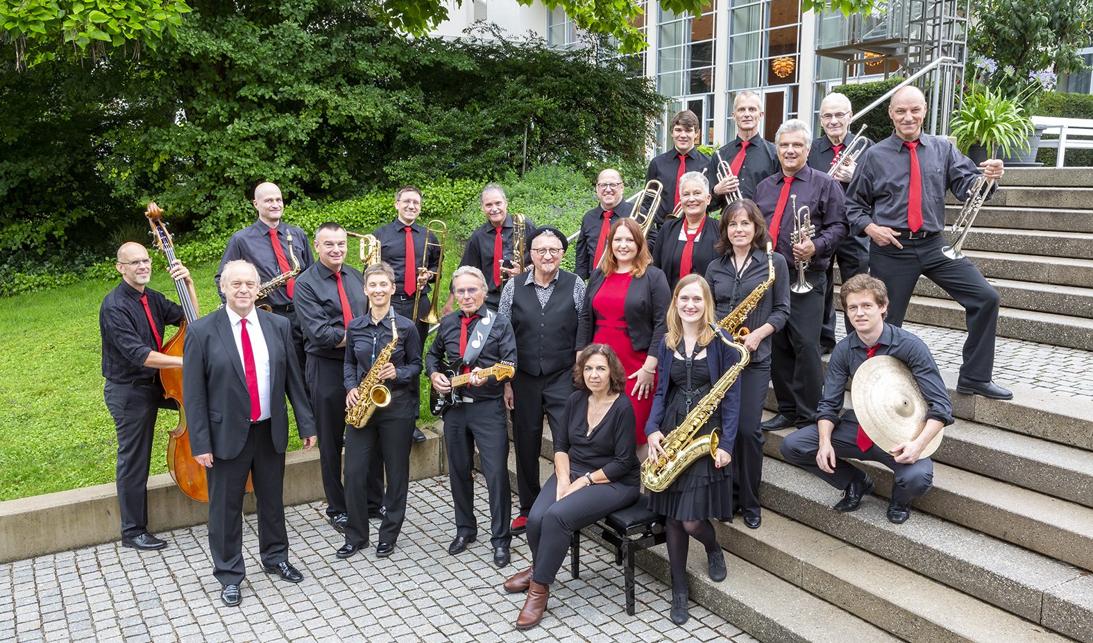 Bad Aibling / Landkreis Rosenheim – Die Aiblinger Big Band spielt um ihren Bandleader Bernhard Schmid mit 20-köpfiger Besetzung, einschließlich Sänger, am Sonntag, 18. Mai, von 10 Uhr bis 12 Uhr im Brunnenhof des Bad Aiblinger Kurhauses auf.