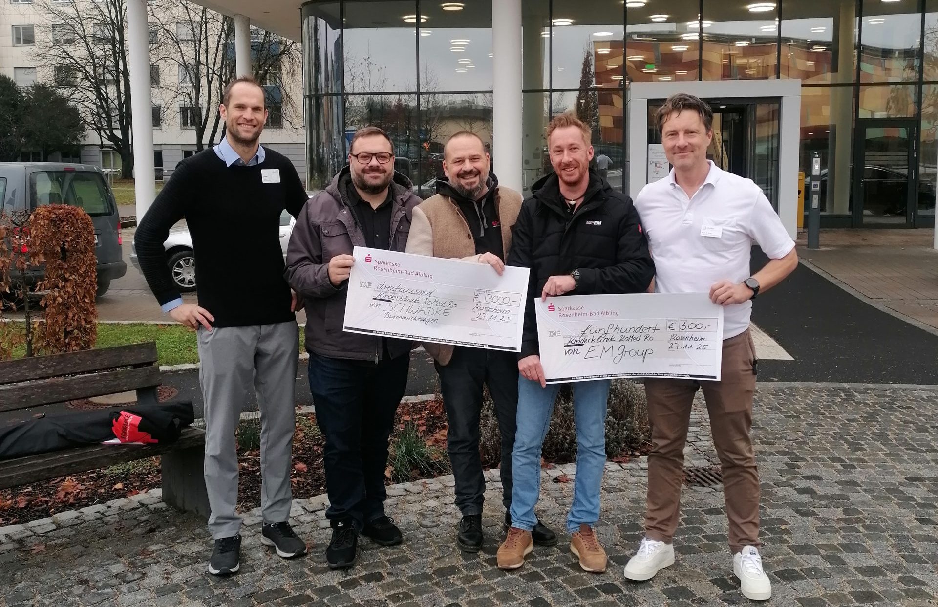 Rosenheim – Beschäftigte, Kunden und Geschäftspartner der Schwadke Büroeinrichtungen GmbH sowie der Elektro Maier GmbH haben gemeinsam 3.500 Euro für die Kinderklinik am RoMed Klinikum Rosenheim gesammelt. Die Spende soll verschiedene Projekte zur Unterstützung der jungen Patienten fördern.