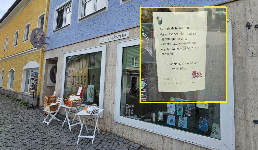 „...Tja, alles hat auch mal ein Ende„, schreiben die Inhaber zum Ende ihres Geschäfts in der Färberstraße 4a in Rosenheim auf ihrer Webseite. Letzter Verkaufstag ist Samstag, 26. Juli. Am Sonntag, 27. Juli, steht dann ab 18 Uhr als letzte Veranstaltung noch „Abfeiern und Raustrinken“ mit den Stammkunden auf dem Programm. Ab 1. August sind die Pforten von „Schmidt und Stein“ dann für immer geschlossen.