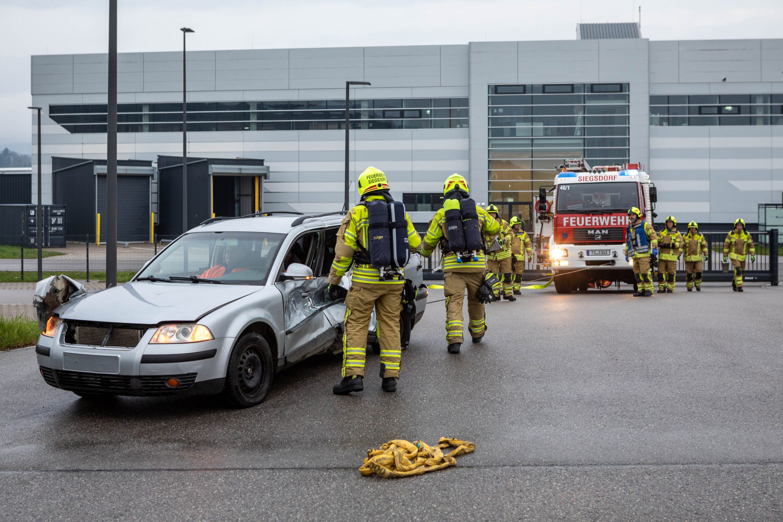 Siegsdorf / Landkreis Traunstein – Bei einer großangelegten Einsatzübung im Gewerbegebiet Gastager Feld in Siegsdorf (Landkreis Traunstein) trainierten rund 180 Feuerwehrkräfte den Ernstfall eines schweren Verkehrsunfalls mit LKW und gefährlichem Säureaustritt.