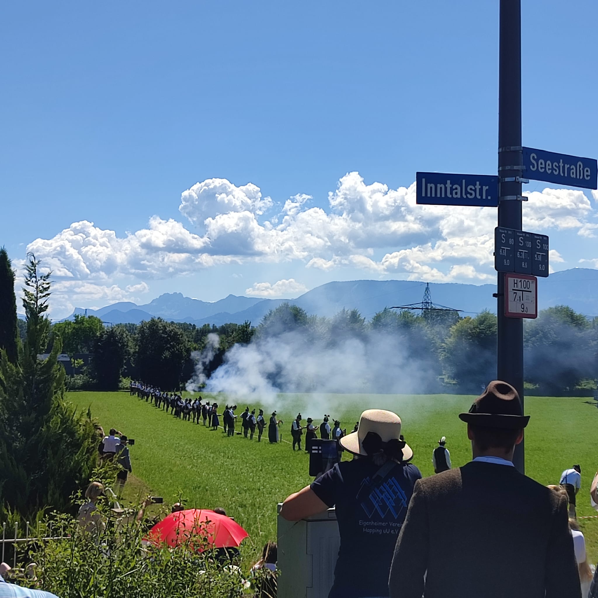 Happing / Rosenheim – 75 Jahre Schützengesellschaft Wasen Happing und 20 Jahre Böllerschützen Happing (Stadt Rosenheim): gefeiert wird mit einer Festwoche, die am heutigen Sonntag (29.5.2025) mit Festgottesdienst und Gauböllertreffen ihren Höhepunkt erlebte.