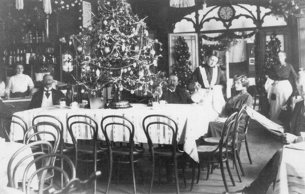 Rosenheim – Unsere fotografische Zeitreise geht heute zurück in das Jahr 1910. Auf der historischen Aufnahme sehen wir eine Weihnachtsfeier im Hotel „Deutsches Haus“ in der Königstraße in Rosenheim.