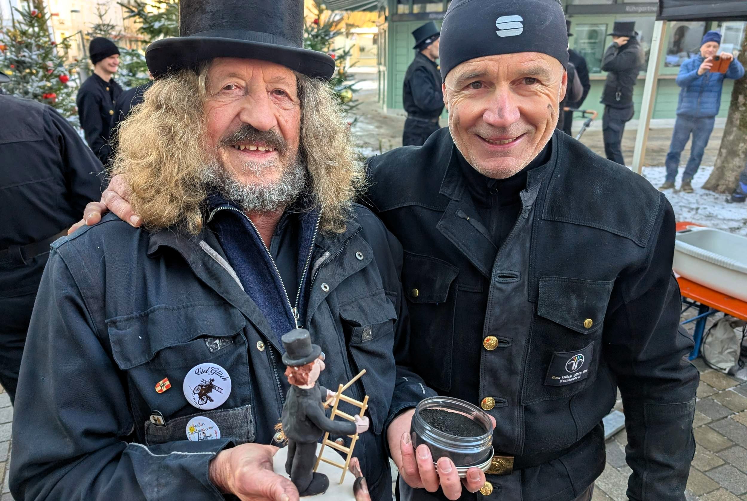 Die „Glücksbringer-Neujahrsaktion“ gibt es inzwischen seit 25 Jahren. Rund 50 Kaminkehrer waren vor Ort, verzierten Gesichter und Nasen mit Ruß und wünschten den Menschen ein glückliches neues Jahr. „Manche kommen mittlerweile extra wegen der schwarzen Nase zu unserer Aktion in die Stadt“, schmunzelt Siegfried Waak aus Unterwössen, alias „Da Ruaß“. Seine Frau bastelte zudem kleine Kaminkehrer aus Ton, die gegen eine Spende mitgenommen werden konnten.