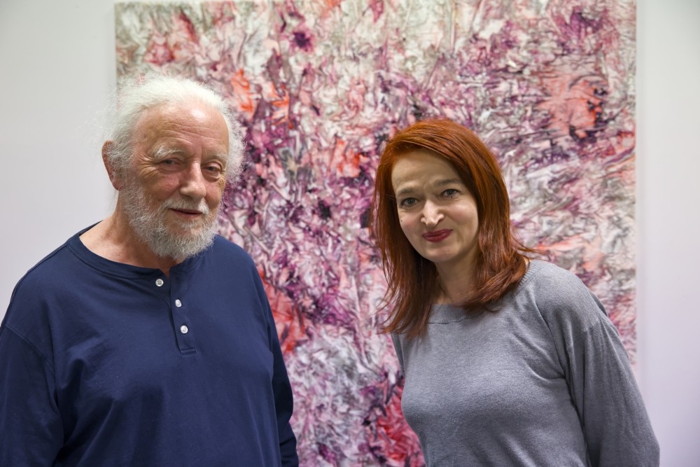 Sowohl bei Conni Lechner als auch Rudolf Wolfbeisser steht die Farbe im Mittelpunkt ihrer abstrakten Werke. Vielschichtig und dreidimensional bei Rudolf Wolfbeisser – intensiv und dynamisch bei Conni Lechner. Wolfbeissser arbeitet mit Folien und verschiedensten Materialien, bei Conni Lechner steht der Prozess des Malens im Vordergrund. Zur Eröffnung spielte das Duo Synthonym.