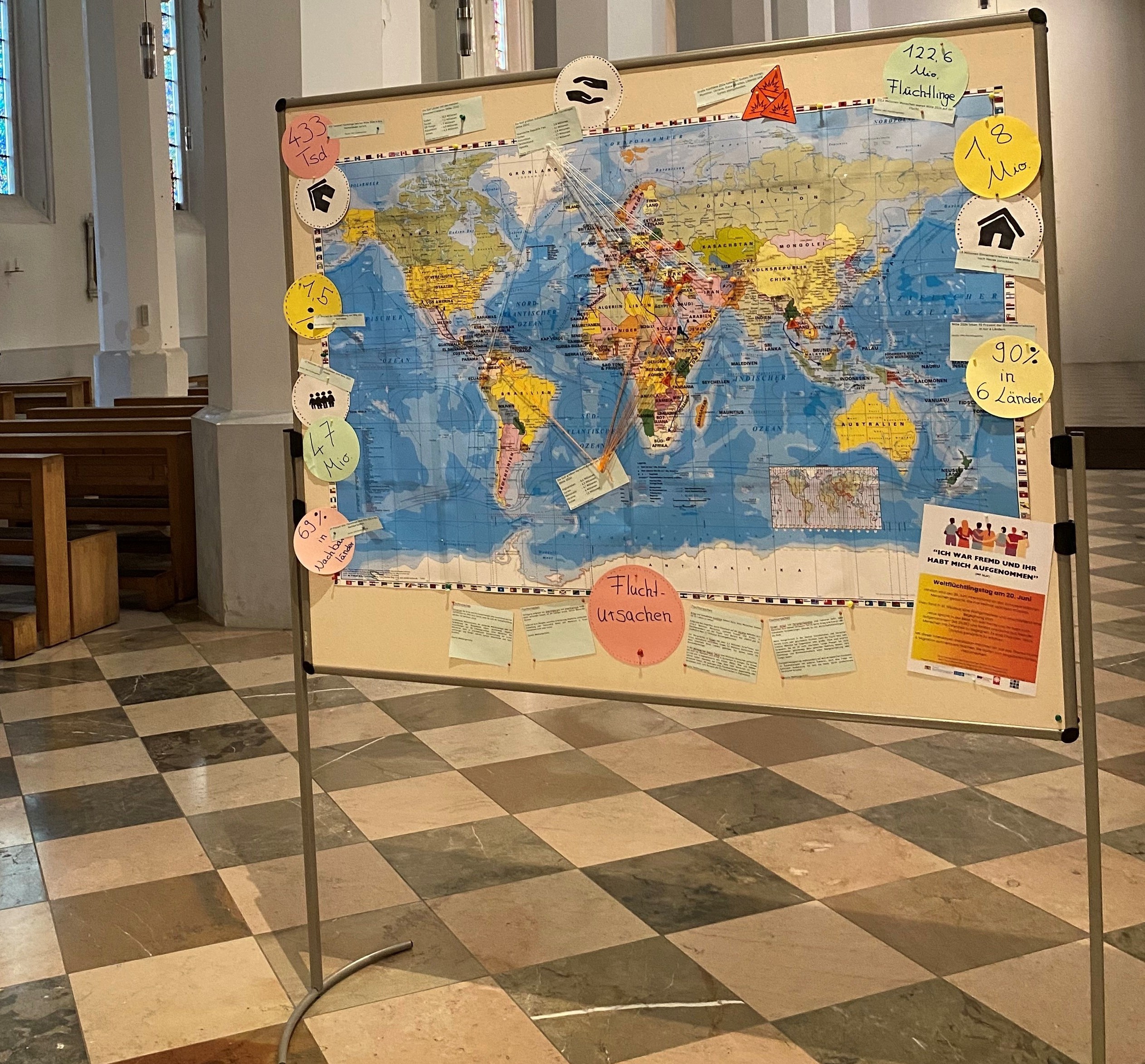 Motto waren die Worte Jesu: „Ich war fremd und ihr habt mich aufgenommen“ (Mt 25,35). Besucher waren in den vergangenen vier Wochen eingeladen, auf Pinnwänden zu notieren, wann oder wo sie sich fremd fühlen. So ergaben sich „Schreib-Gespräche“