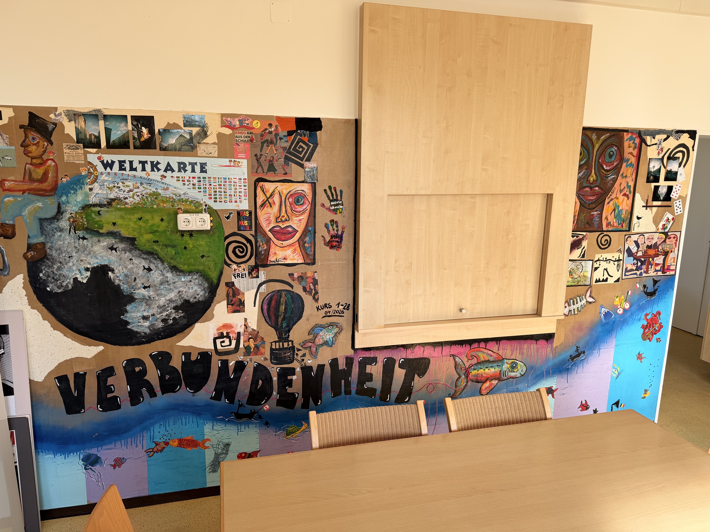 Themenwand im Aufenthaltsraum. Foto: Copyright kbo-Inn-Salzach-Klinikum