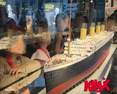 Mitglieder des KNAX-Klubs bestaunen im Lokschuppen Rosenheim das beeindruckende Lego-Modell der Titanic. Foto: Sparkasse Rosenheim-Bad Aibling