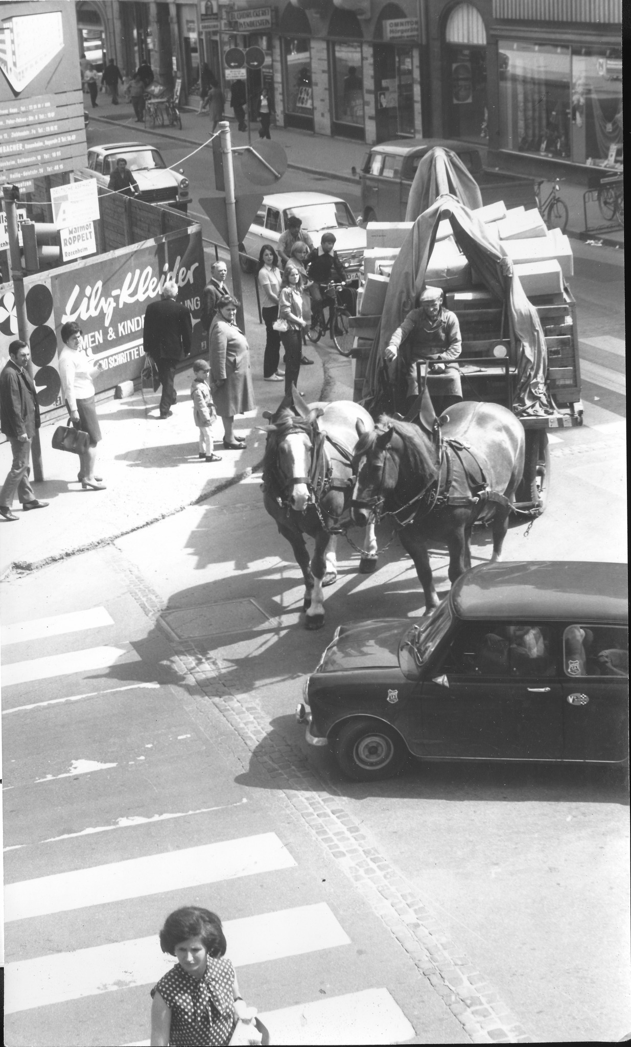 1. Die Fuhrwerke der Laderinnung fuhren noch bis in die 70er. An der dort großflächig angebrachten Werbuing für Lily-Kleider erkannte man jahrelang schon von weitem die Fahrzeuge der Paketpost.