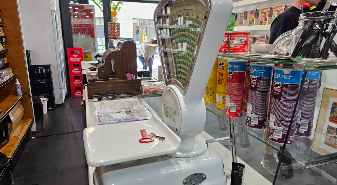 Wer den neuen mit großer Liebe zum Detail ausgestatteten Kiosk „Kramer 28“ in der Münchener Straße 28 betritt, fühlt sich zurückversetzt in die Zeit, in der die Kramerladen noch Mittel- und Angelpunkt in den Städten und Dörfern waren. Der Einkauf wurde oftmals auch zum Miteinander und Austausch von Neuigkeiten genutzt. Genau das wünscht sich der Rosenheimer Christoph Hartl zurück Bisher arbeitete er als technischer Angestellter bei einer Hausverwaltung. Nun wagte er zusammen mit seiner Frau etwas Neues. Unterstützung bekam er von einem Freund, der nostalgische Gegenstände aus den 1950er Jahren sammelt. Vor einiger Zeit stießen sie im Internet auf eine Anzeige, in der eine komplette Ladeneinrichtung aus dieser Zeit angeboten wurde. „Theke und Regale stammen aus einem früheren Mühldorfer Kramerladen“, erzählt der frischgebackene Kioskbetreiber. Mit dem Kauf wurde die Idee geboren, wieder einen Kiosk mit dem Flair eines Kramerladens im Herzen der Rosenheimer Innenstadt zu eröffnen. Vervollständigt wurde die Ausstattung mit Sammelobjekten von Hartls Freund, dazu zählen beispielsweise die alte Waage und die alte Ladenkasse.