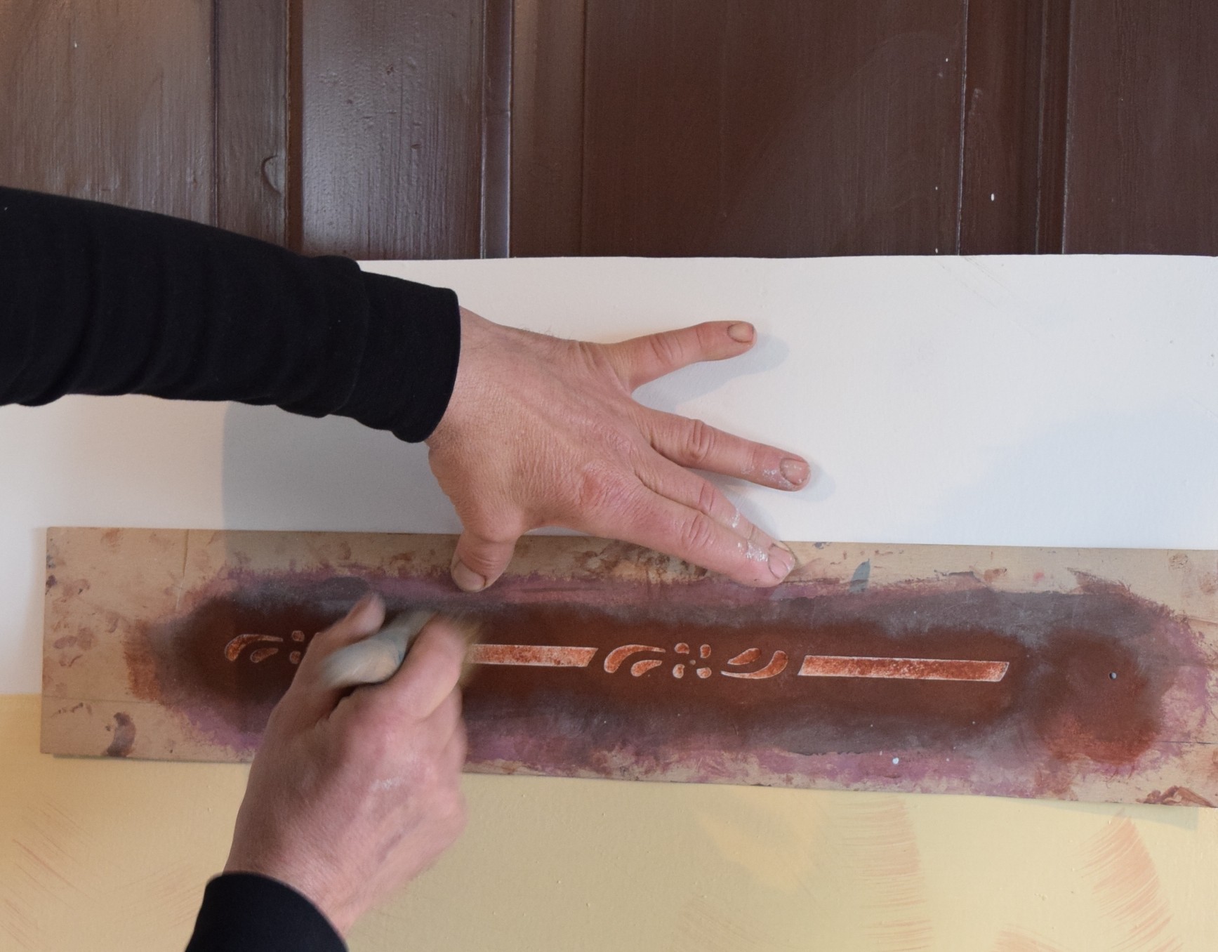 In dem zweieinhalbstündigen Workshop zu der traditionellen Gestaltungstechnik können die Teilnehmer aus einer Vielzahl historischer Vorlagen ihr Wunschmotiv auswählen, eine eigene Schablone anfertigen und unter fachkundiger Anleitung die Technik des Schablonierens ausprobieren. So entstehen fortlaufende Muster, die jedem Raum eine individuelle Note verleihen.