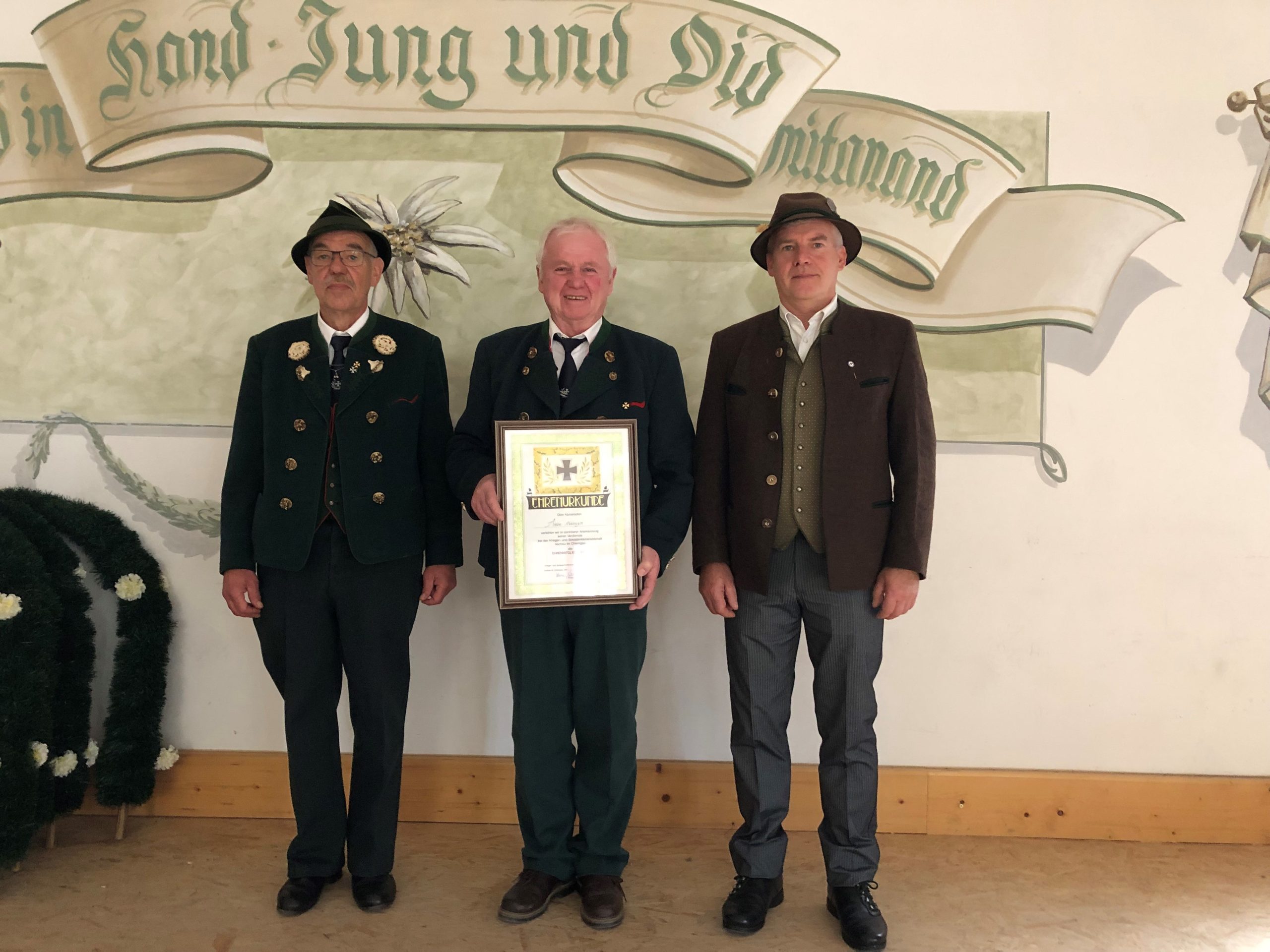 Das neue Ehrenmitglied (von links): Erster Vorstand Hans Pellkofer, Toni Abinger und Zweiter Vorstand Hans Hailer. Fotos Copyright Berghammer