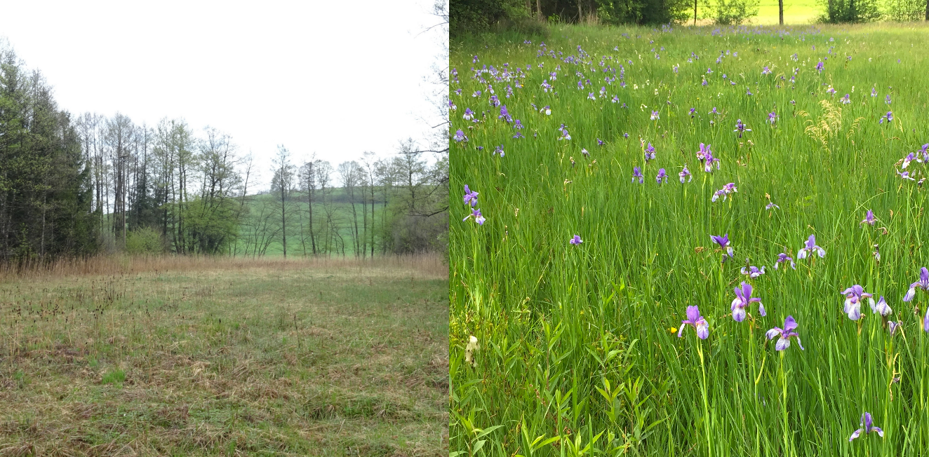 (Quell: Pressemitteilung Landschaftspflegeverbands Rosenheim / Beitragsbild: Ein direkter Vergleich: Brachfläche im Thalkirchner Moos bei Bad Endorf vor dem Beginn der Maßnahmen und nach dem erfolgreichen Abschluss der Aufwertung durch den Landschaftspflegeverband Rosenheim. Copyright Landschaftspflegeverbands Rosenheim)
