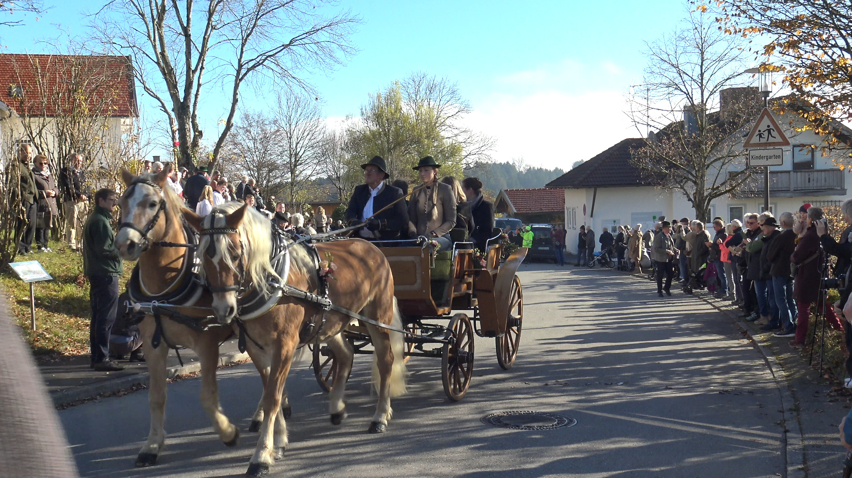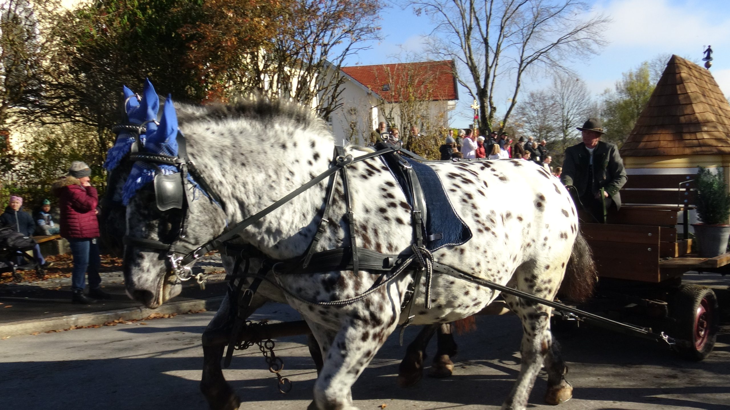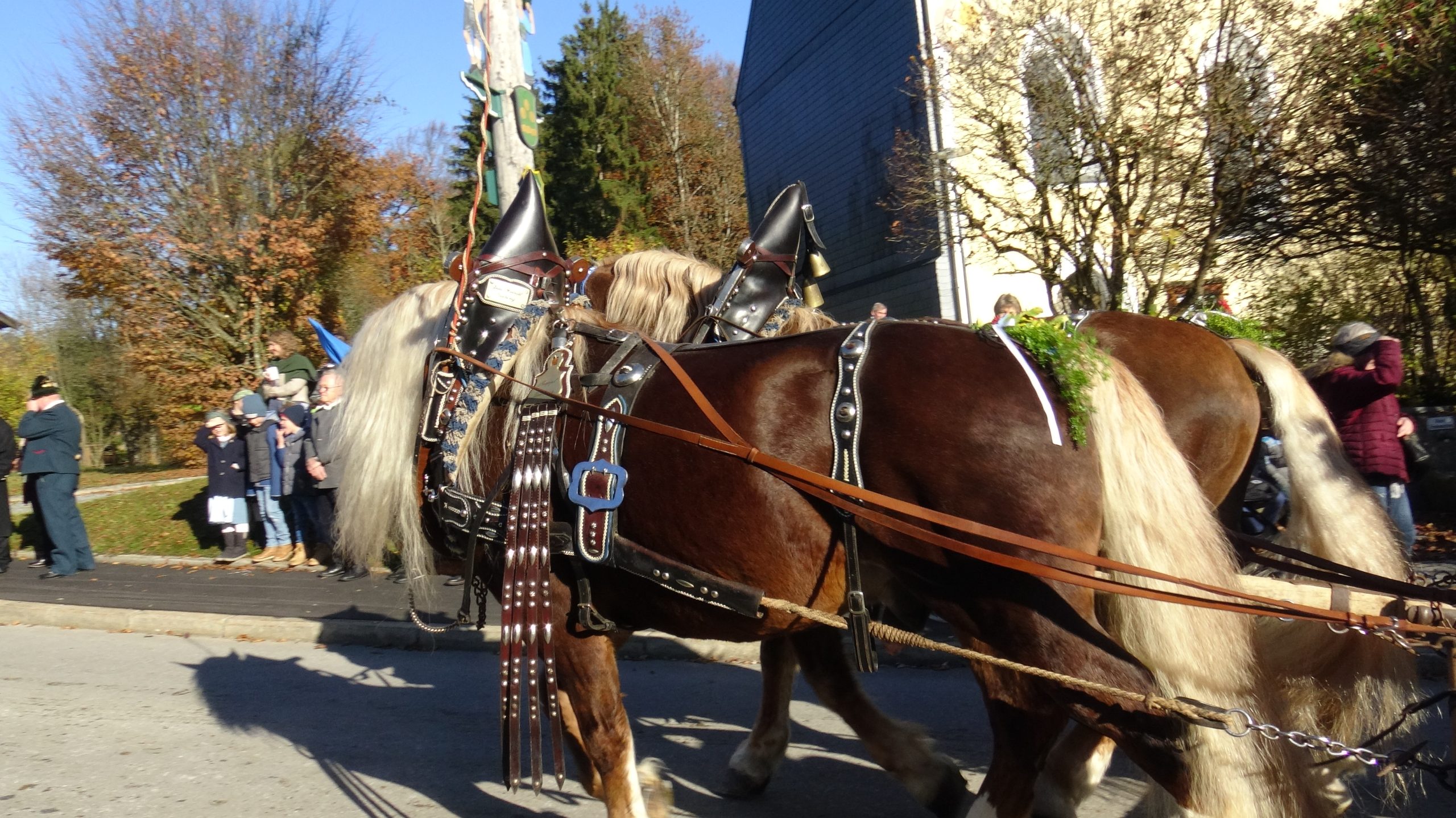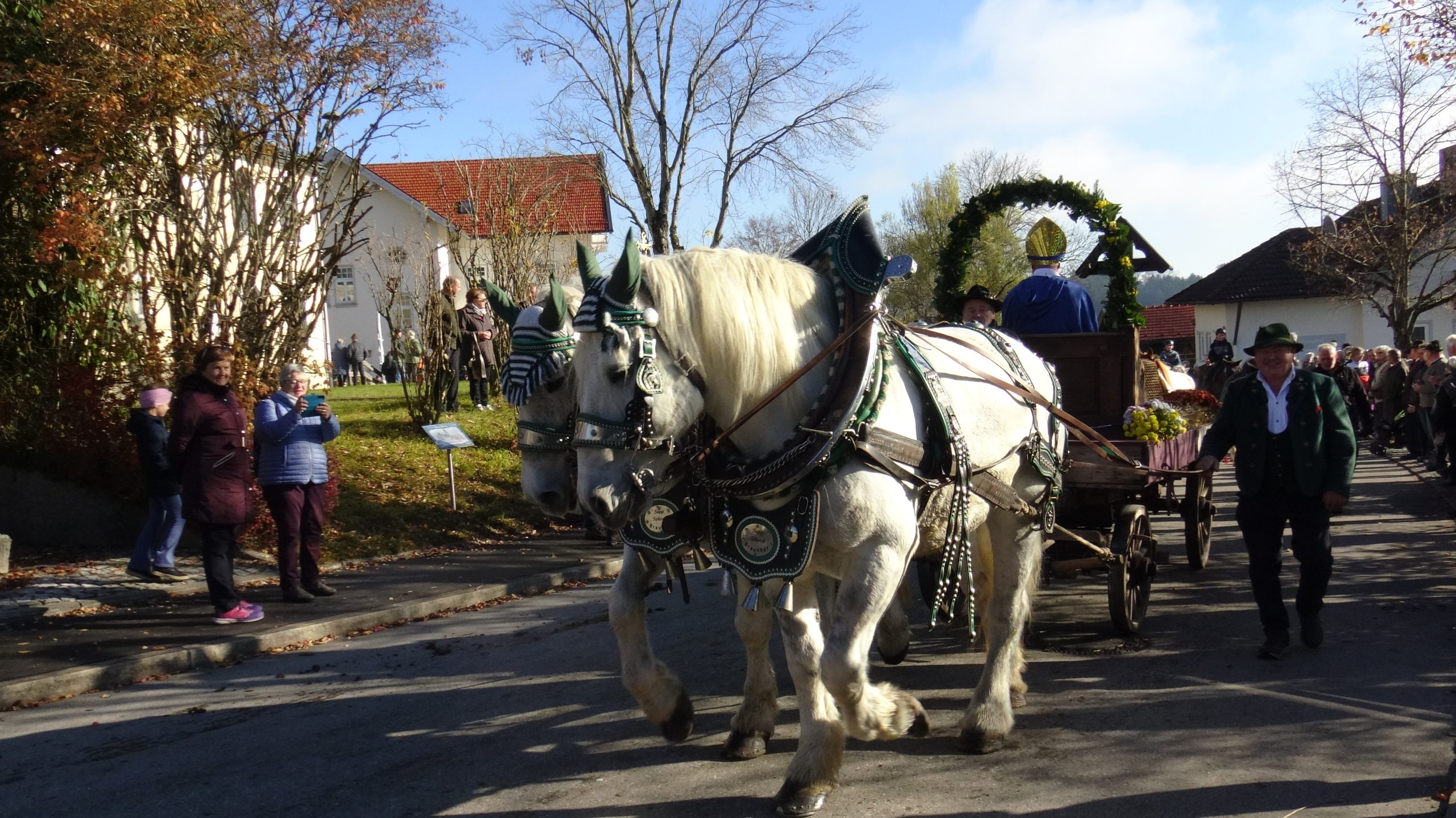 Greimharting / Landkreis Rosenheim – In Greimharting (Gemeinde Rimsting) erlebten die Besucher des Leonhardiritts dieses Jahr Bilderbuchwetter: Nach morgendlichem leichtem Nebel am 6. November strahlte die Sonne über die festlich geschmückten Pferde, Ponys und Kutschen.