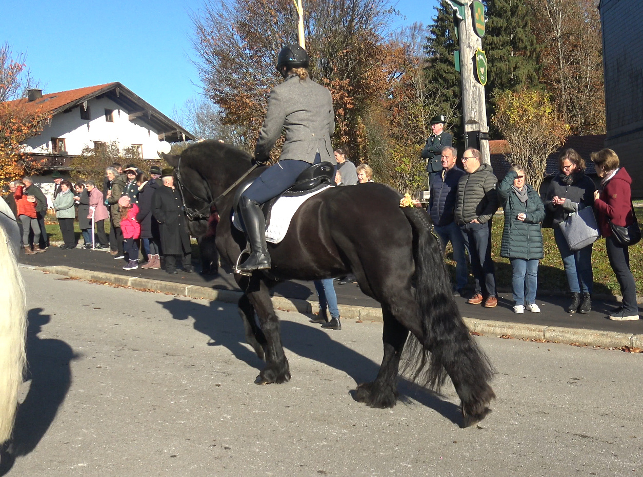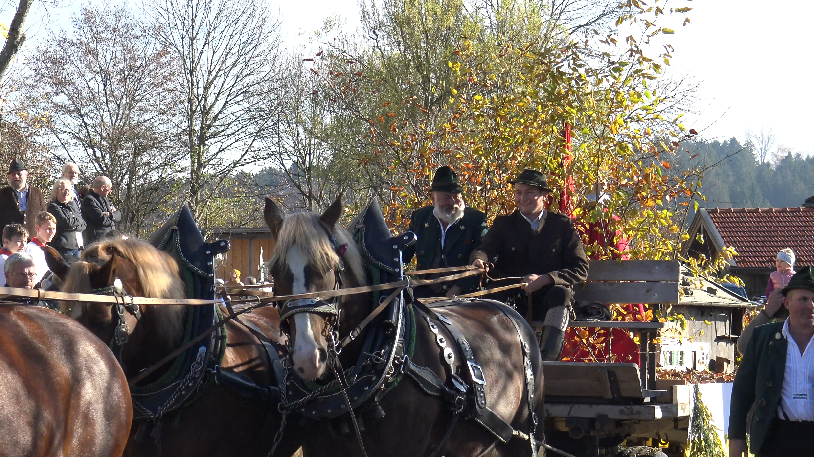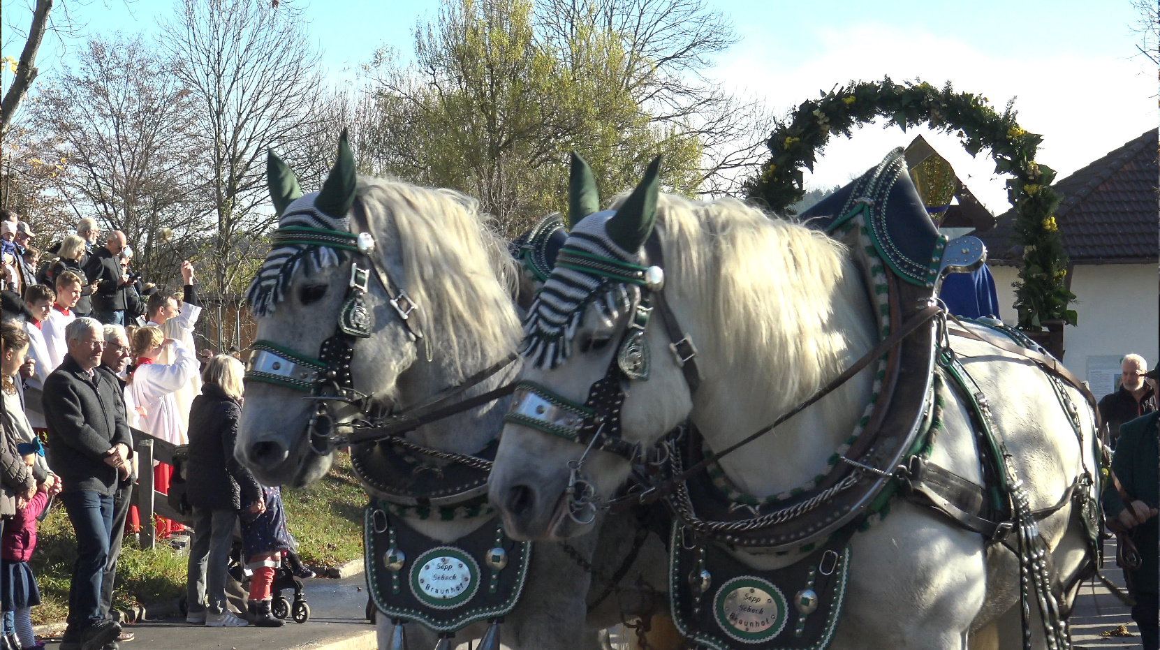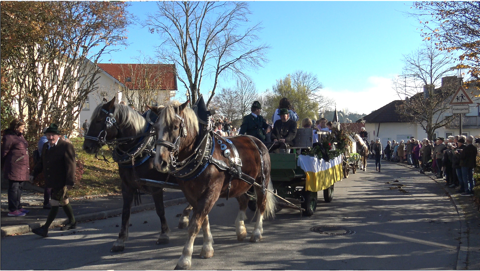 Greimharting / Landkreis Rosenheim – In Greimharting (Gemeinde Rimsting) erlebten die Besucher des Leonhardiritts dieses Jahr Bilderbuchwetter: Nach morgendlichem leichtem Nebel am 6. November strahlte die Sonne über die festlich geschmückten Pferde, Ponys und Kutschen.