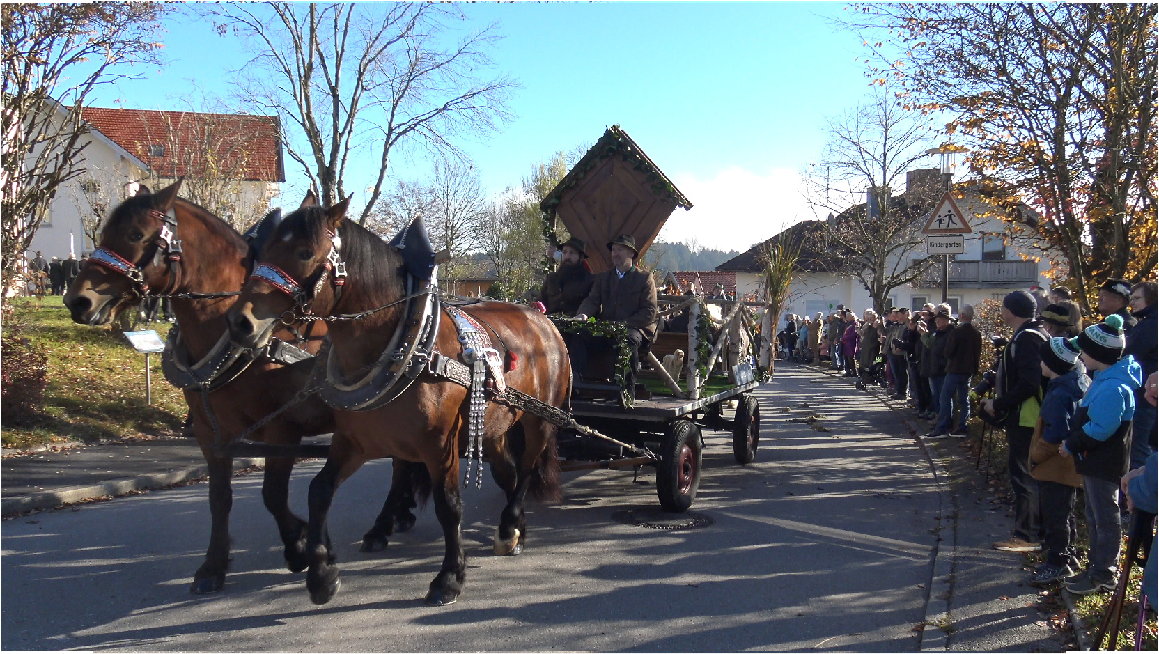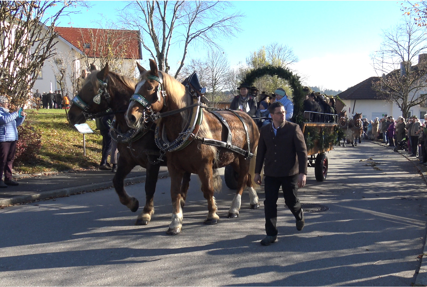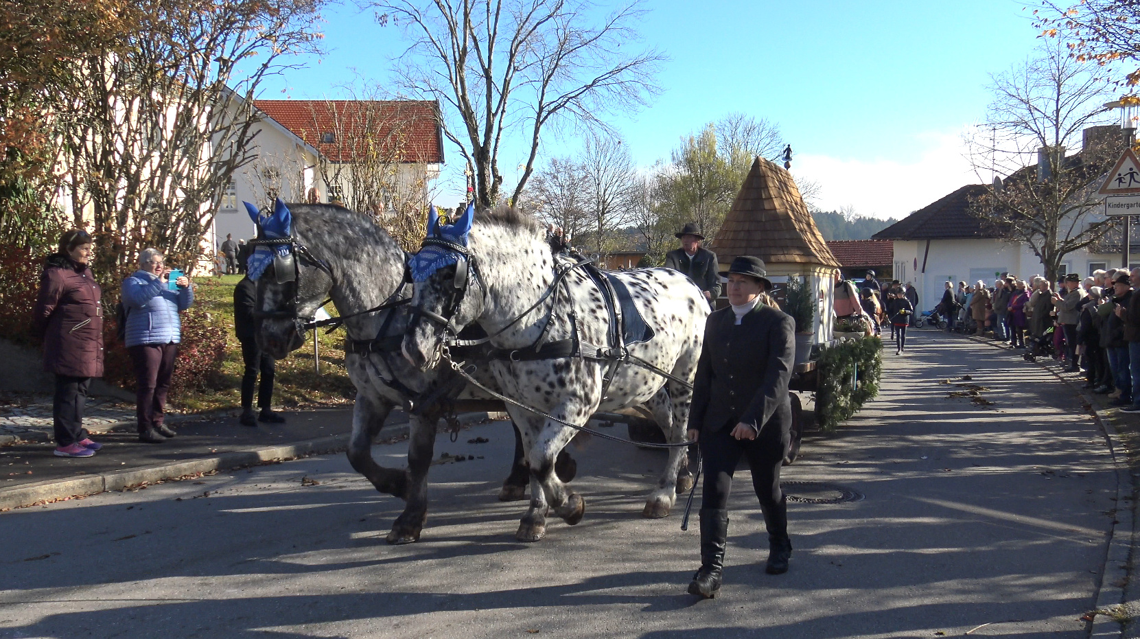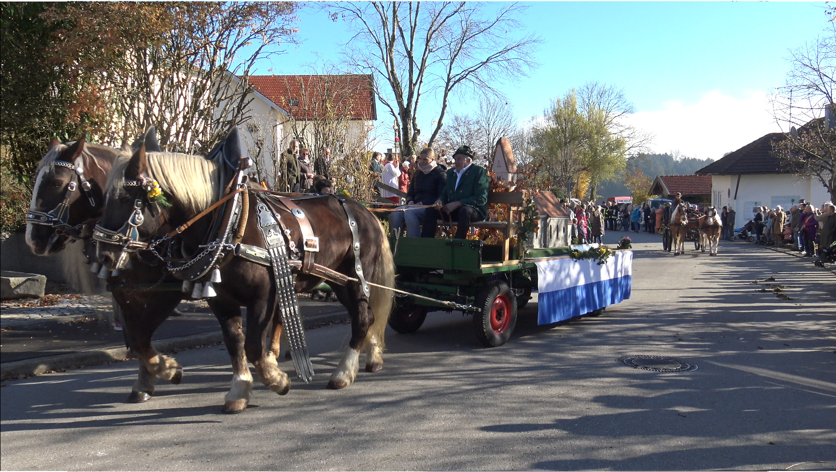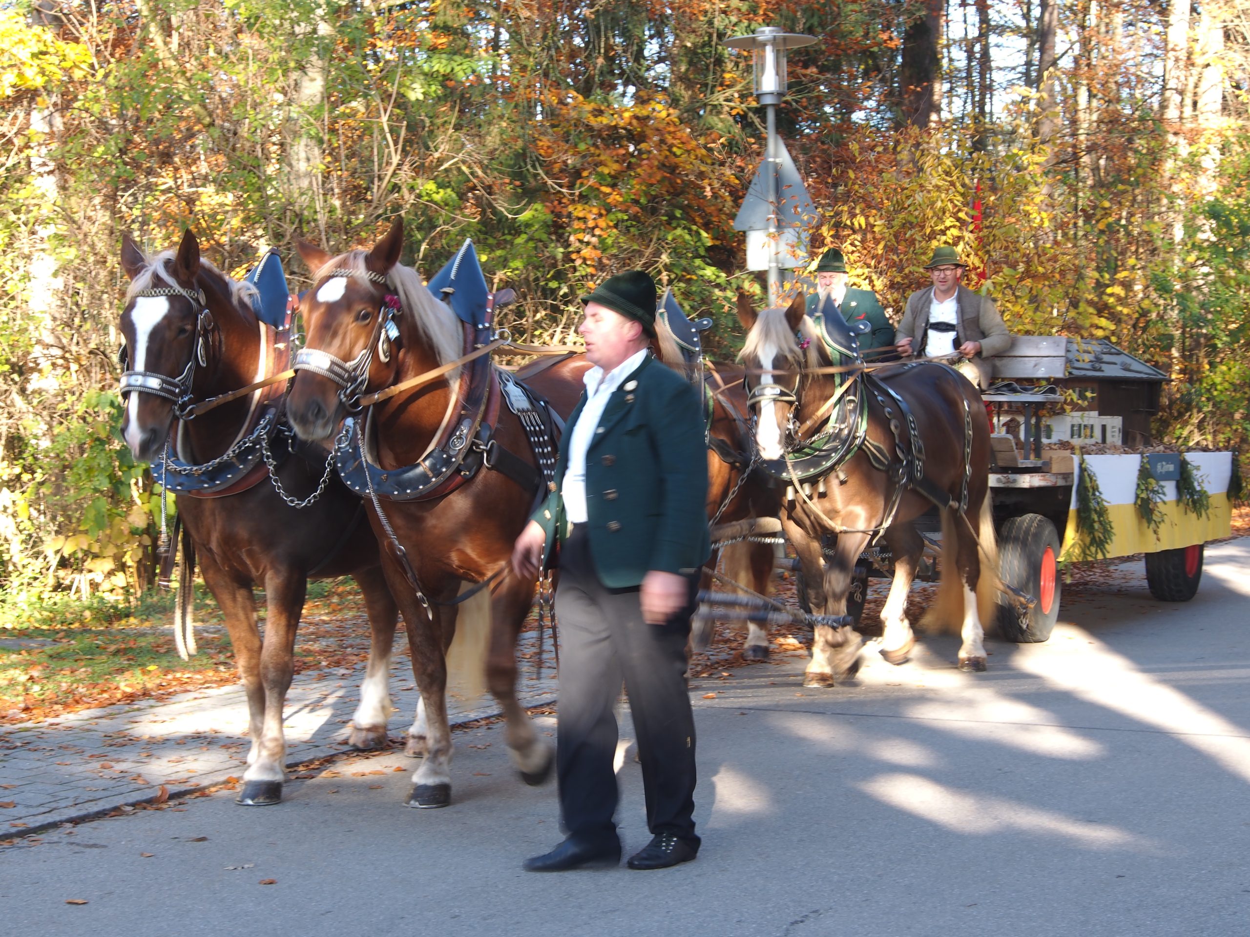 Greimharting / Landkreis Rosenheim – In Greimharting (Gemeinde Rimsting) erlebten die Besucher des Leonhardiritts dieses Jahr Bilderbuchwetter: Nach morgendlichem leichtem Nebel am 6. November strahlte die Sonne über die festlich geschmückten Pferde, Ponys und Kutschen.
