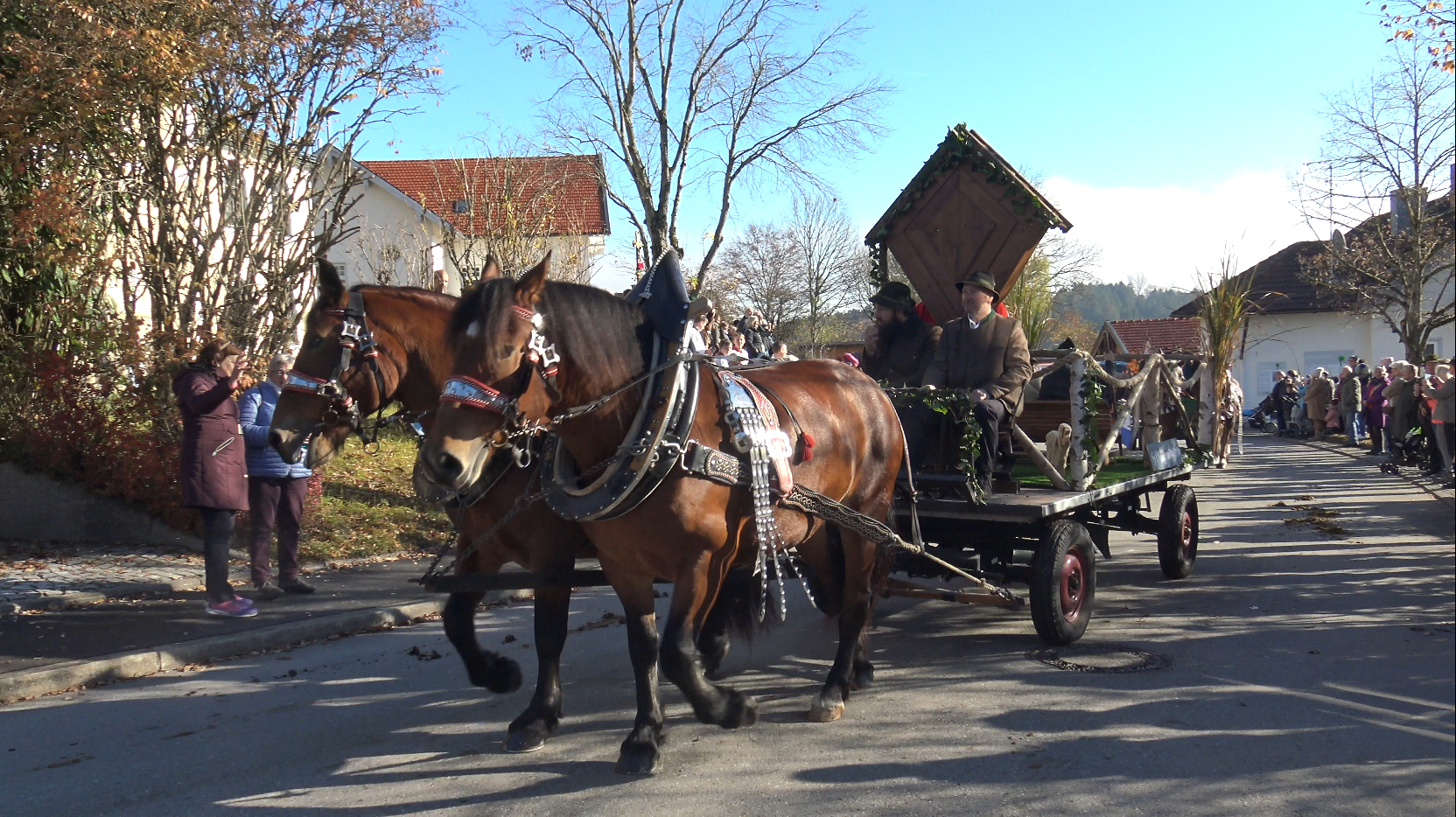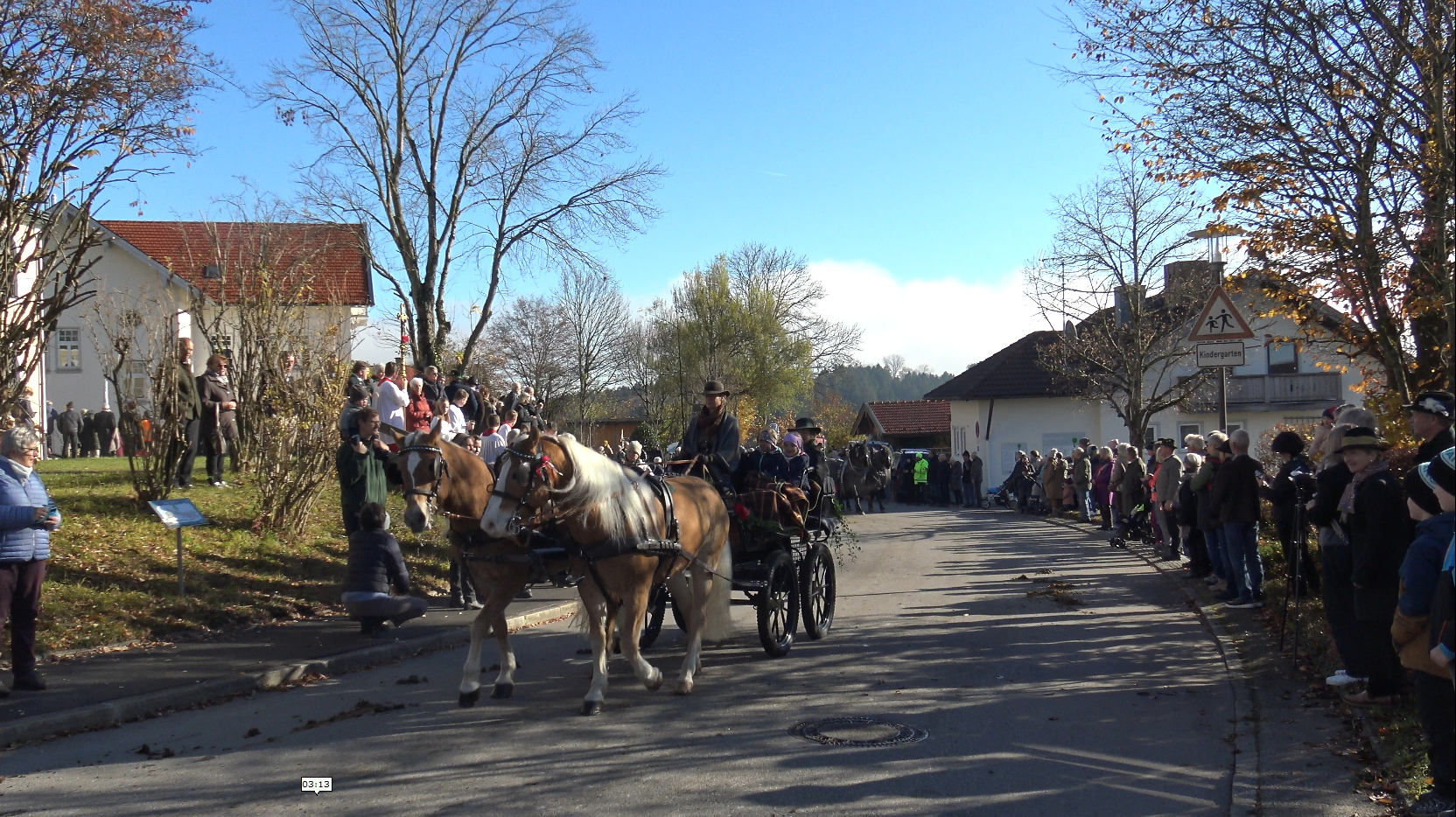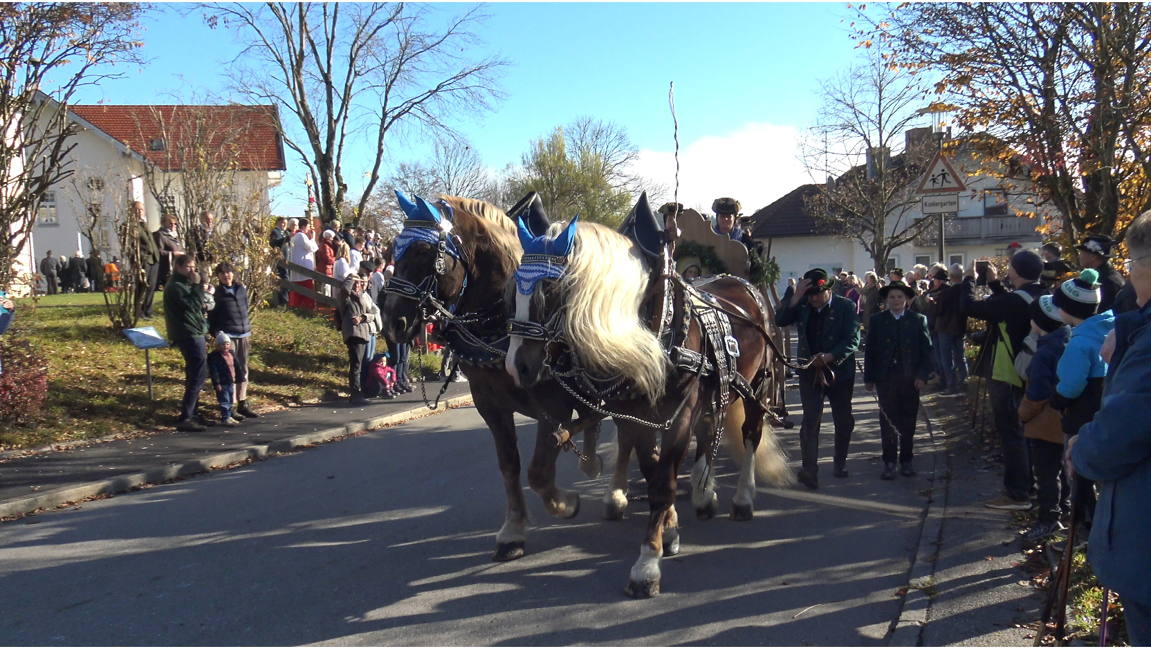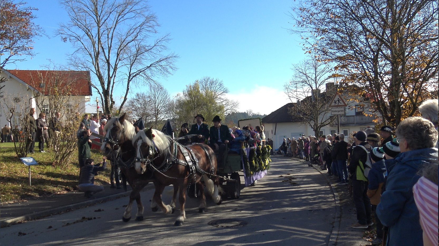 Greimharting / Landkreis Rosenheim – In Greimharting (Gemeinde Rimsting) erlebten die Besucher des Leonhardiritts dieses Jahr Bilderbuchwetter: Nach morgendlichem leichtem Nebel am 6. November strahlte die Sonne über die festlich geschmückten Pferde, Ponys und Kutschen.