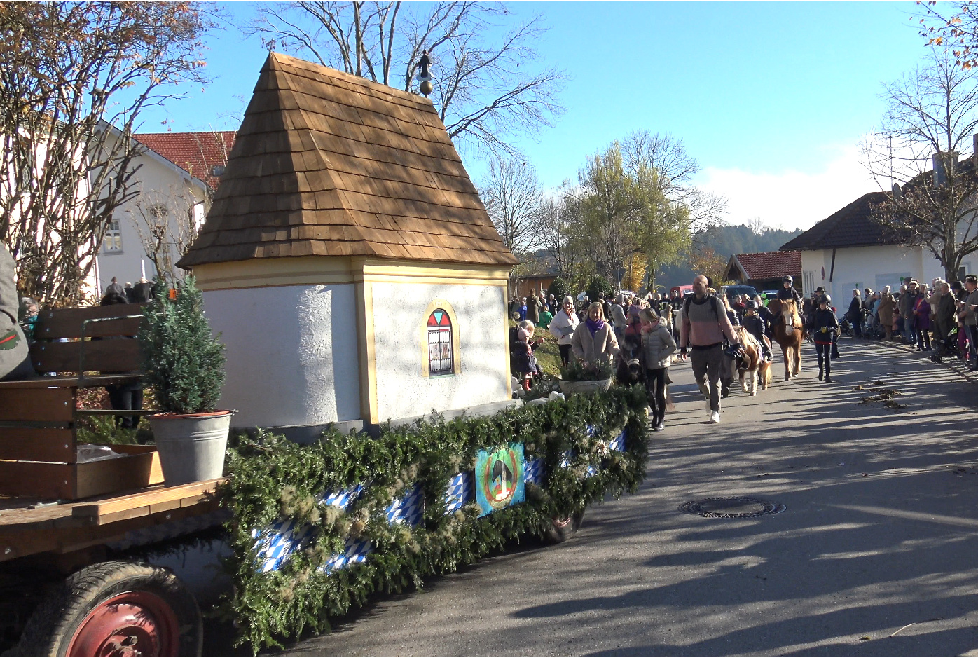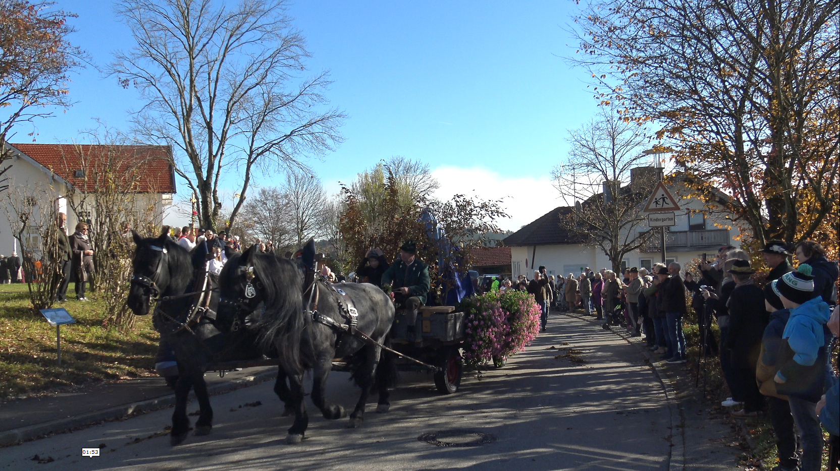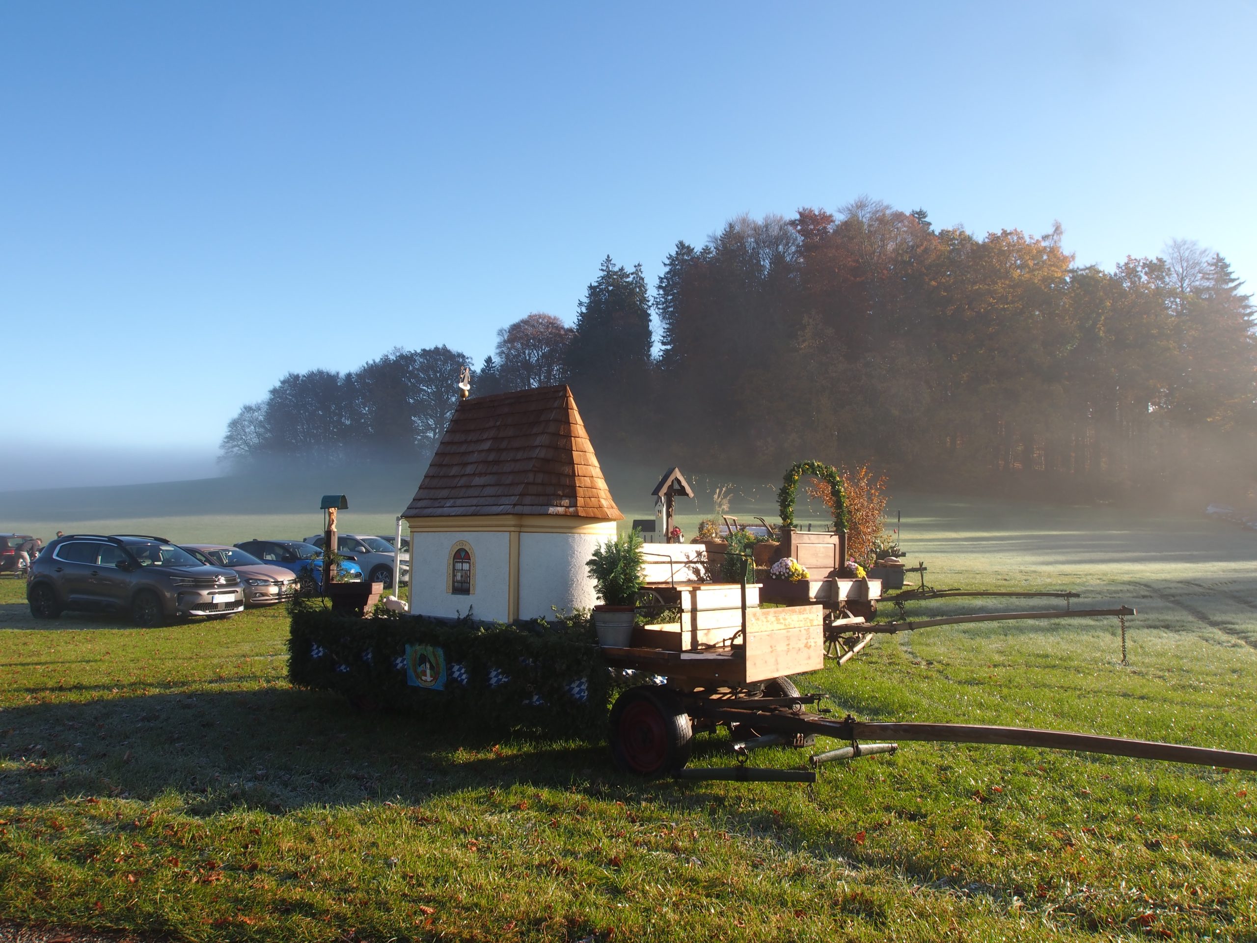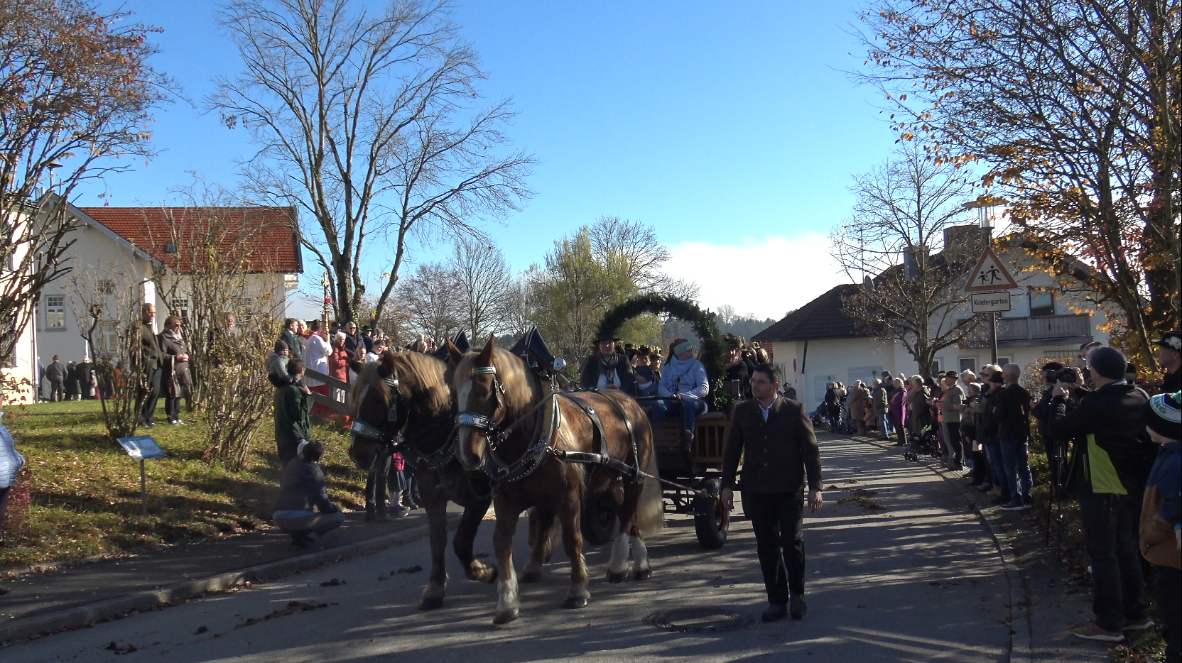 Greimharting / Landkreis Rosenheim – In Greimharting (Gemeinde Rimsting) erlebten die Besucher des Leonhardiritts dieses Jahr Bilderbuchwetter: Nach morgendlichem leichtem Nebel am 6. November strahlte die Sonne über die festlich geschmückten Pferde, Ponys und Kutschen.