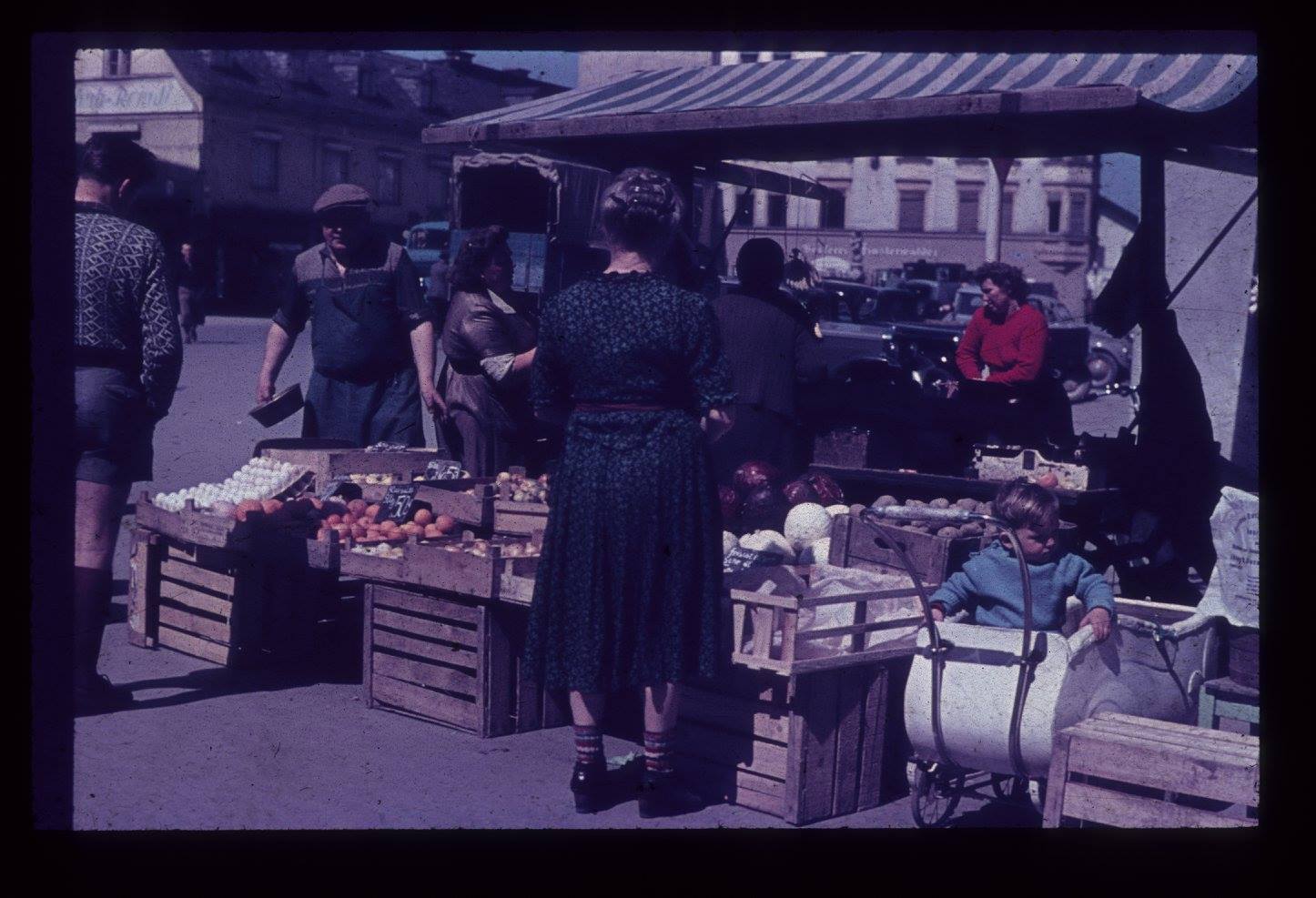 Viktualienmarkt am Ludwigsplatz in Rosenheim im Jahr 1952. Foto: Archiv Herbert Borrmann
