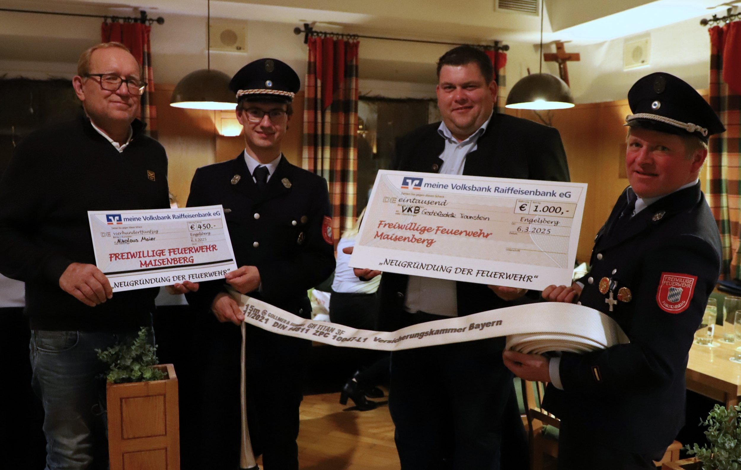 Engelsberg / Maisenberg / Landkreis Traunstein – Im Rahmen der Jahreshauptversammlung erhielten die Mitglieder der Feuerwehr Maisenberg gleich zwei Spenden, die darauf abzielen, den Start in den eigenen vier Wänden sowie des eigenen Fahrzeugs zu fördern.