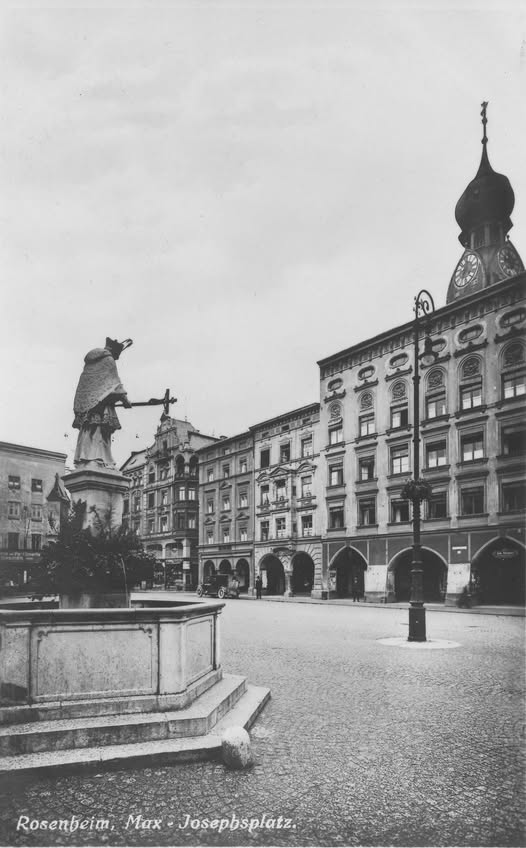 Rosenheim – Unsere fotografische Zeitreise geht heute zurück in das Jahr 1927. Auf der historischen Aufnahme sehen wir den Max-Josefs-Platz in Rosenheim.