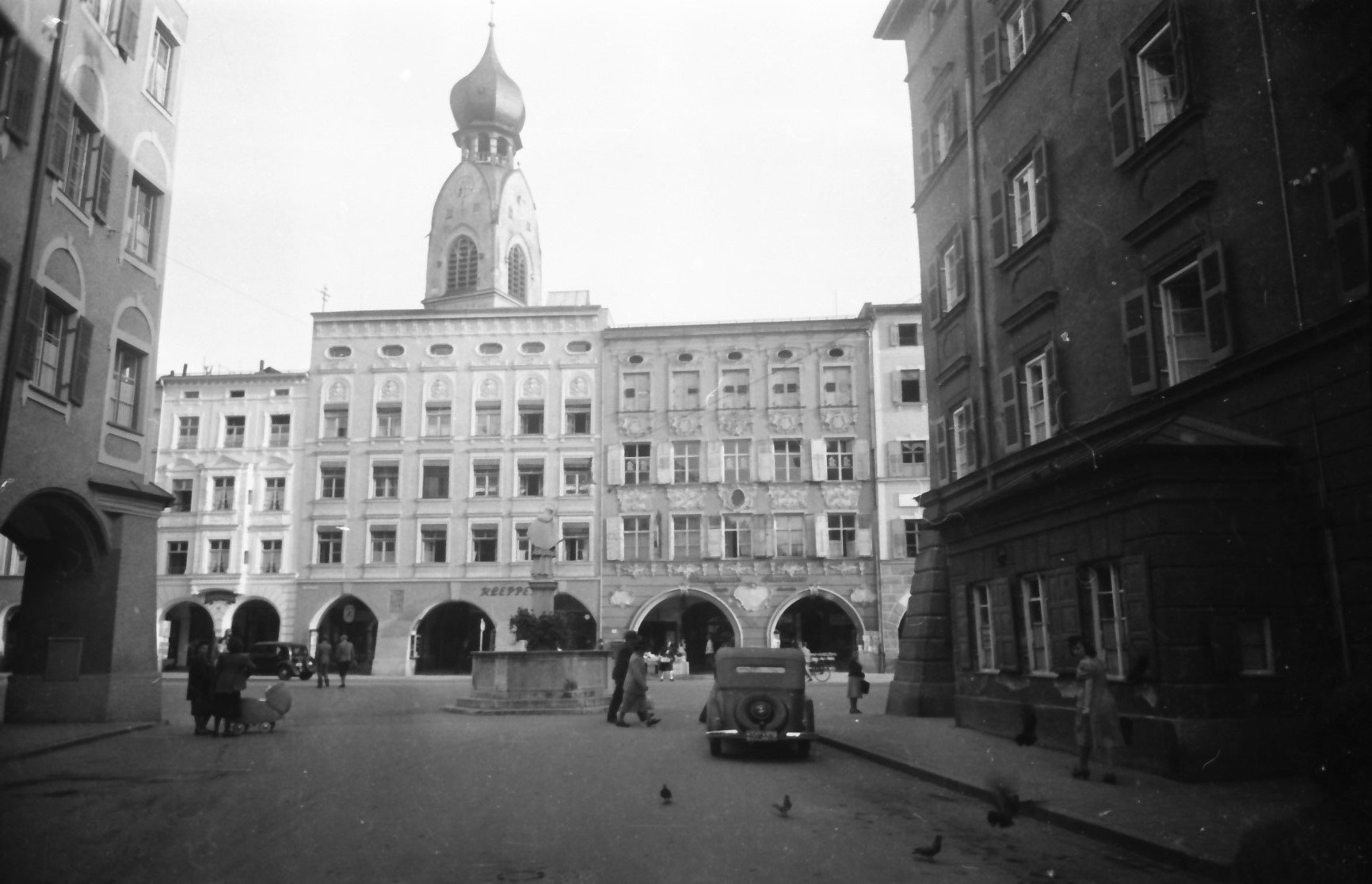 Rosenheim – Unsere fotografische Zeitreise geht heute zurück in das Jahr 1949. Auf der historischen Aufnahme sehen wir den Max-Josefs-Platz in Rosenheim.