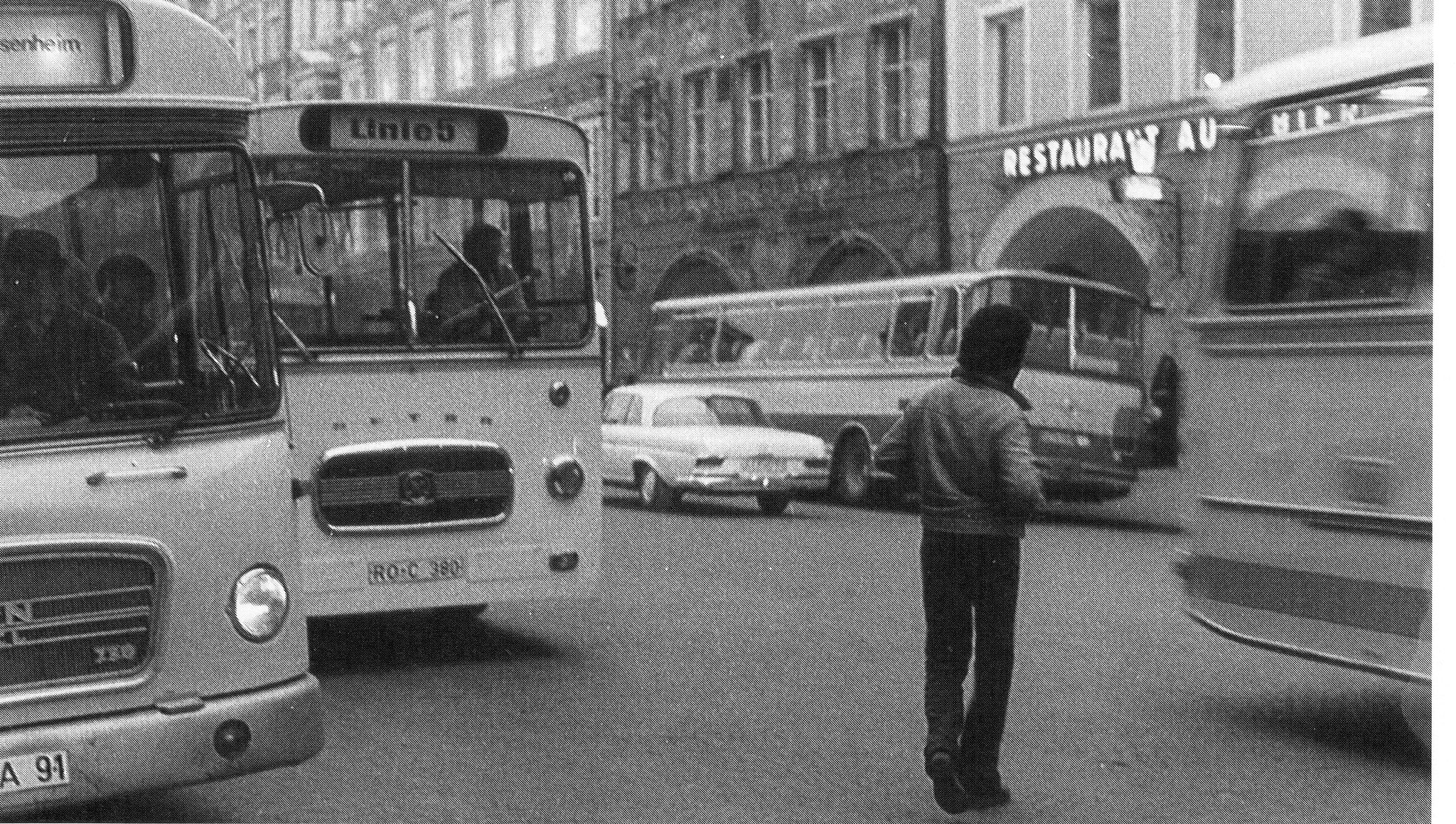 Aus heutiger Sicht ein ungewöhnlicher Anblick mit den vielen Linienbussen in diesem Bereich: Aber zu dieser Zeit war der Max-Josefs-Platz noch keine Fußgängerzone.